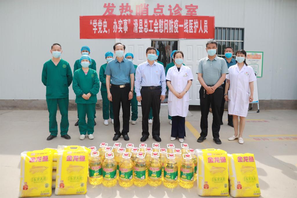 为全面做好关心关爱疫情防控一线职工工作,助力全县常态化疫情防控,推进党史学习教育和“为民办实事”,将学习和办好事有机融合。5月25日上午,在滑县人民政府副县长、县总工会主席郑进武的带领下,县总工会对滑县中心医院传染病病区发热哨点的医护人员进行了诚挚慰问,并为他们送去了慰问品。