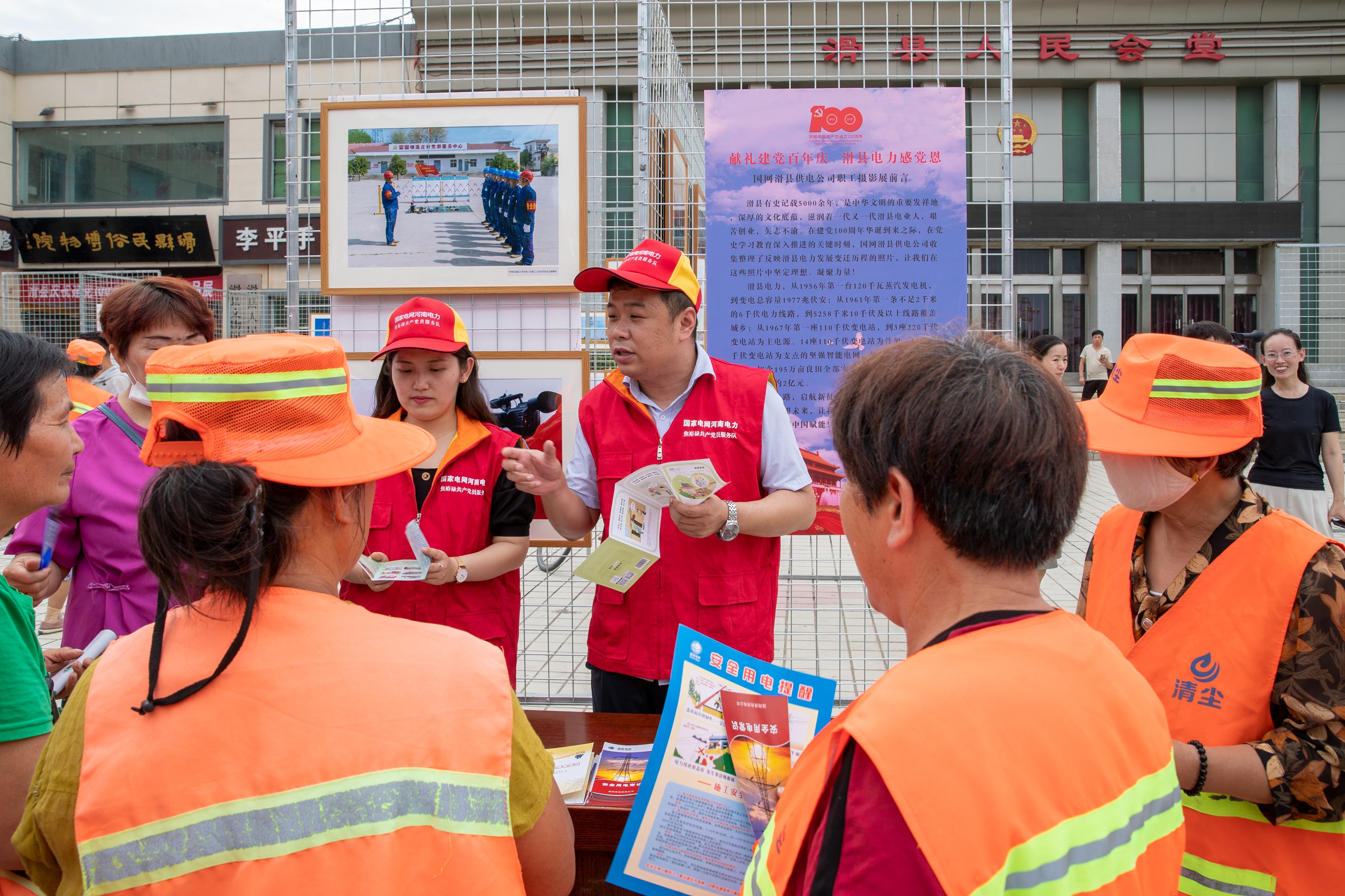6月29日,国网滑县供电公司在该县人民会堂广场举办“献礼建党百年庆 滑县电力感党恩”摄影展,并开展安全用电宣传活动。