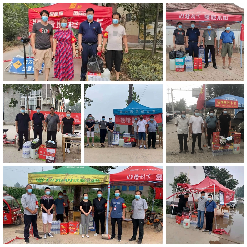 8月12日,滑县中心医院副院长朱瑞林、工会主席张会遵带队分别前往王庄镇莫庄村,小铺乡前杜庄村、后村庄村、许庄村、前任庄村、中寺村、大武庄村共七个医院帮扶村,看望慰问奋战在第一线的卡点工作人员并为他们送去了一次性口罩、消毒液、食品等疫情防控物资,向他们表示慰问。