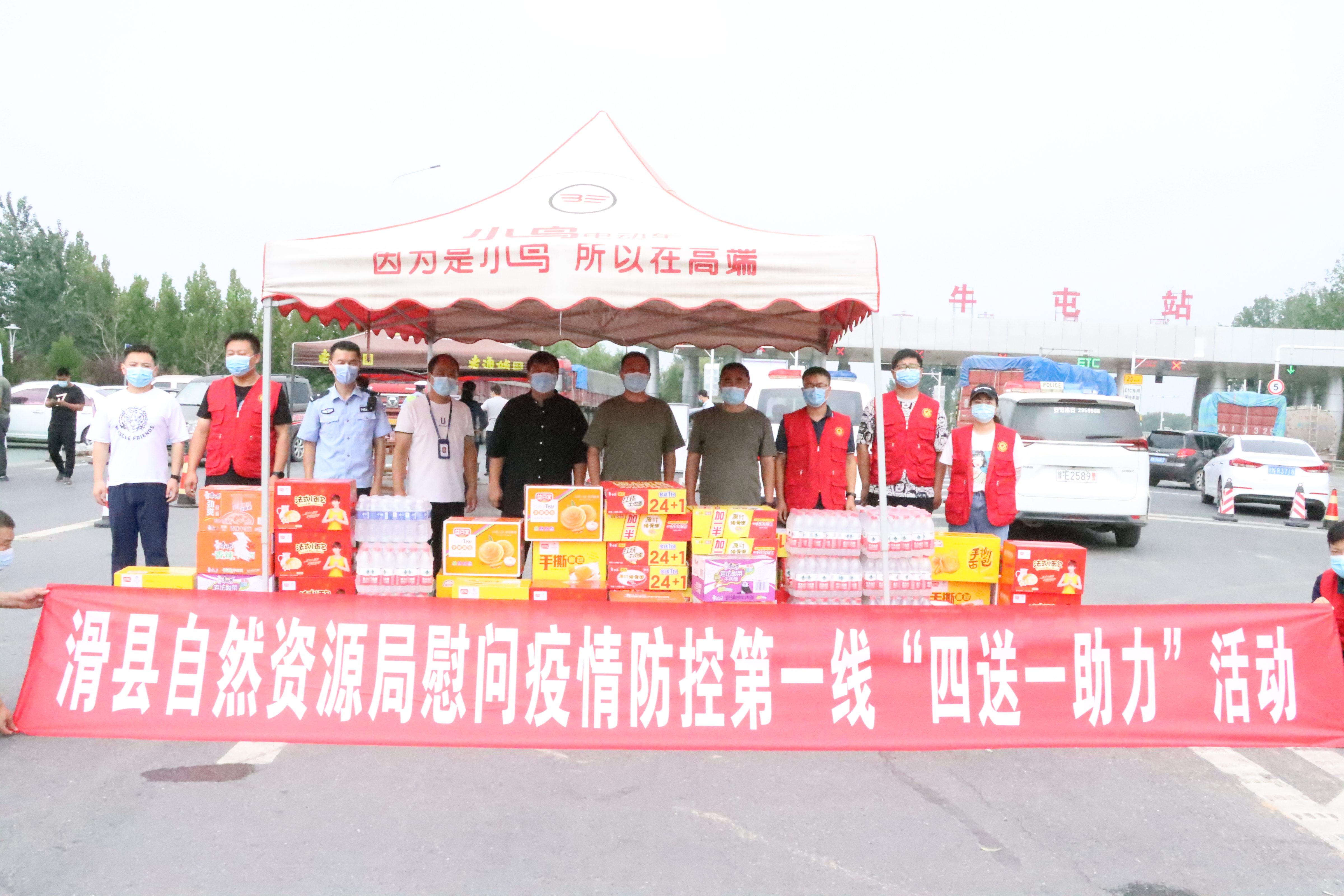 为更好承担社会责任,巩固“我为群众办实事”实践活动与提升文明单位创建成果,发挥省级文明单位示范引领作用,为疫情防控贡献自然资源力量。8月14日上午,局领导付义兵、李永涛带领志愿者一行7人,到荷宝高速牛屯镇高速路口疫情防控卡点处开展“四送一助力”志愿服务活动,为一线疫情防控工作人员送去了矿泉水、方便面、面包、火腿肠等慰问品。