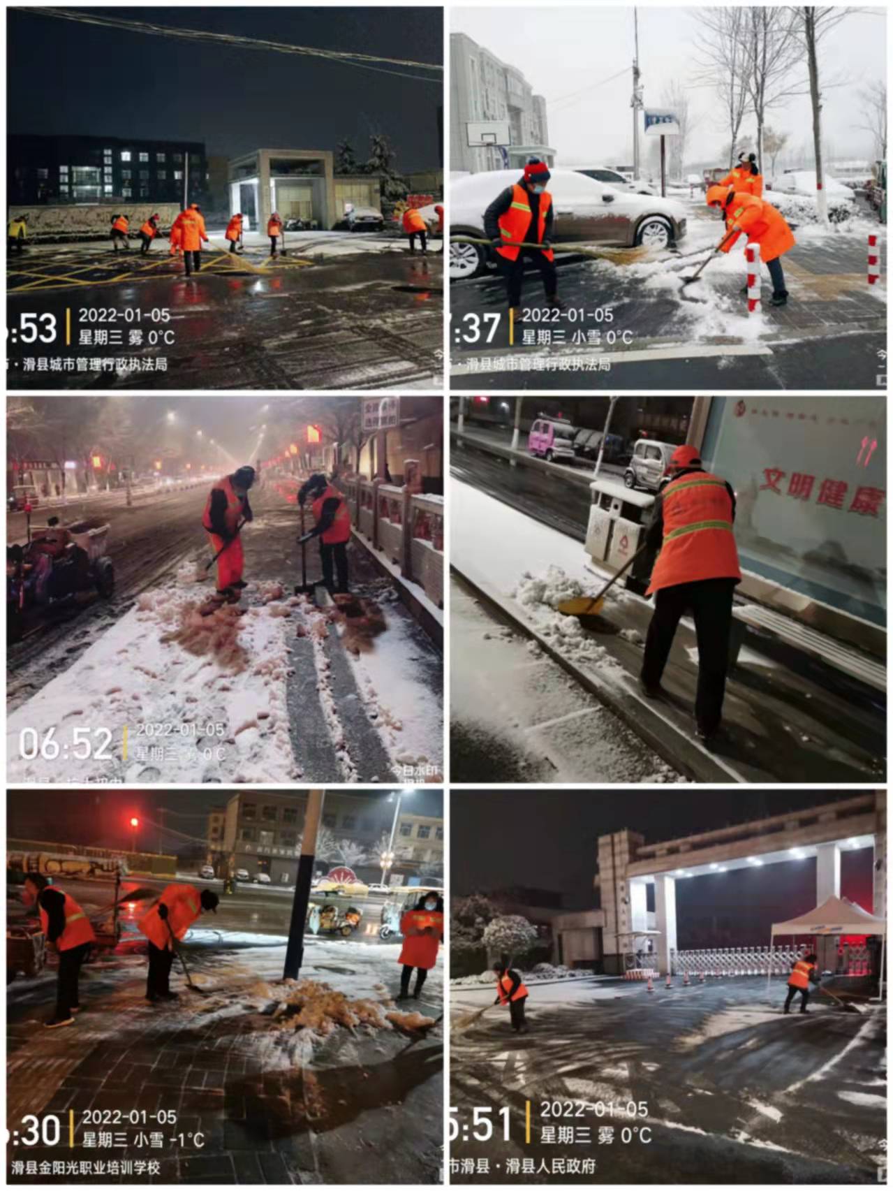 2022年1月5日凌晨,为应对冬季降雪给城市交通、行人带来的不便,滑县城市管理局要求清尘环保公司紧急启动除雪应急预案,采取人工+机械的作业方式,在寒风中,浴“雪”奋战,早早就开始了除雪工作,保障了雪天道路安全畅通。