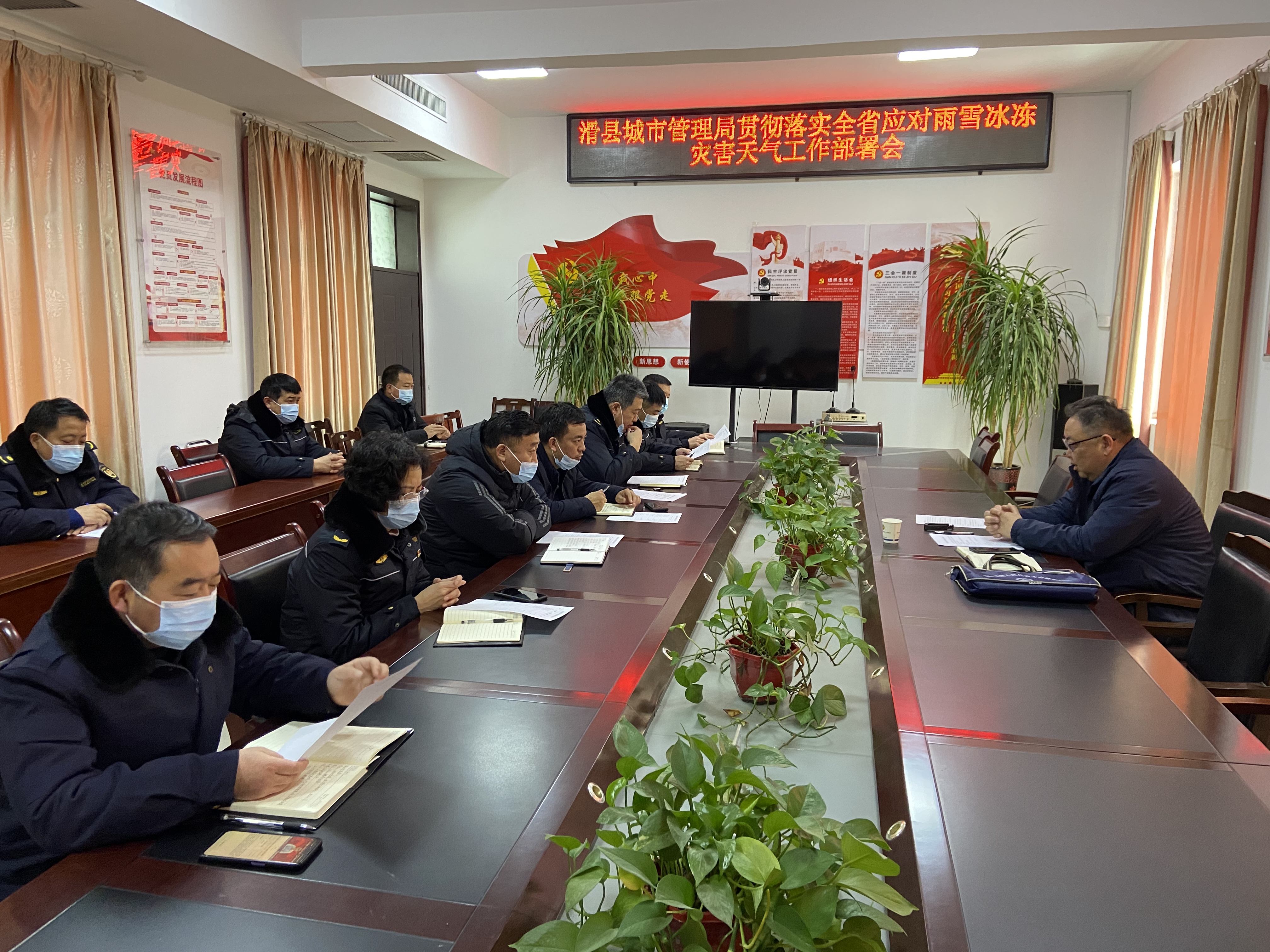 近日,受冷空气和雨雪天气影响,我县立即启动重大气象灾害(道路结冰)Ⅳ级应急响应,2022年1月21日晚我县普降大雪,为保证疫情防控工作和居民正常出行不受影响,滑县城市管理局紧急召开应对雨雪冰冻灾害天气工作部署会,全力开展铲冰除雪工作。