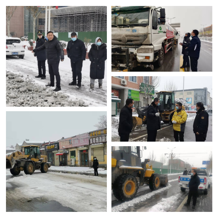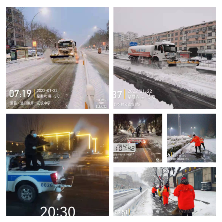 雪情就是命令,滑县城市管理局领导班子成员全体上路,按照划分好的责任区域,迅速投入铲冰除雪工作中,截止目前,动用推雪铲车2辆、铲车12辆、喷撒融雪剂车20余辆,出动7支应急突击队,临时抽调550名环卫工人、城管执法人员70余人,全面开展铲冰除雪工作,全力保障城区主次干道通行正常。