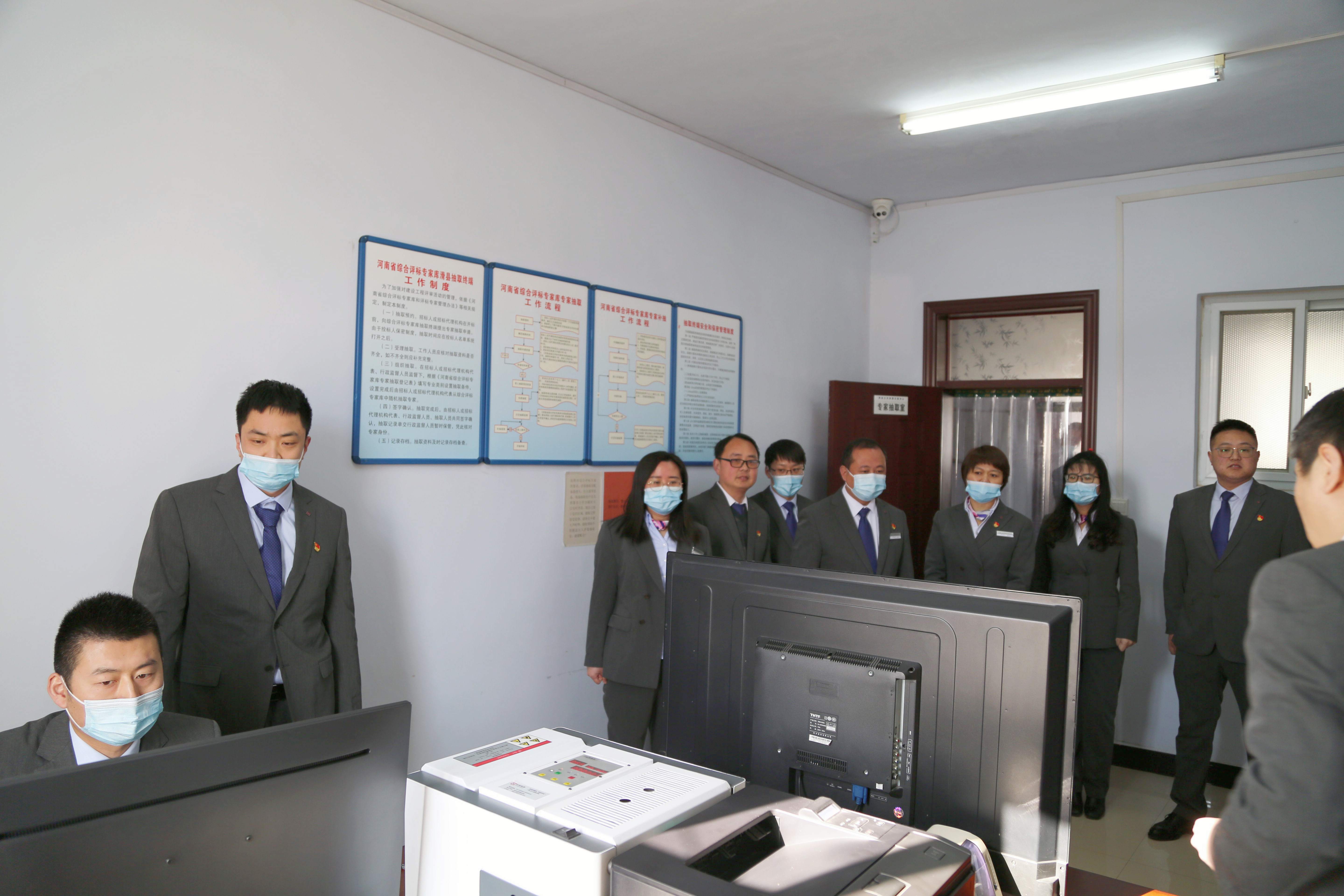 中心党组书记、主任吕伟杰率先垂范,全体干部职工先后来到开标室、监督室、资格审查室、专家抽取室、评标管理室,现场观摩代理机构管理、评审专家抽取、开评标活动等交易全流程,并通过责任股室的讲解,深入学习交易各个环节的工作任务和要求。观摩结束后,立即在四楼会议室召开了流程化管理研讨交流会,各股室代表畅谈跟标学习感受,“面对面”查找交易各环节存在的不足,并提出了具体整改措施。