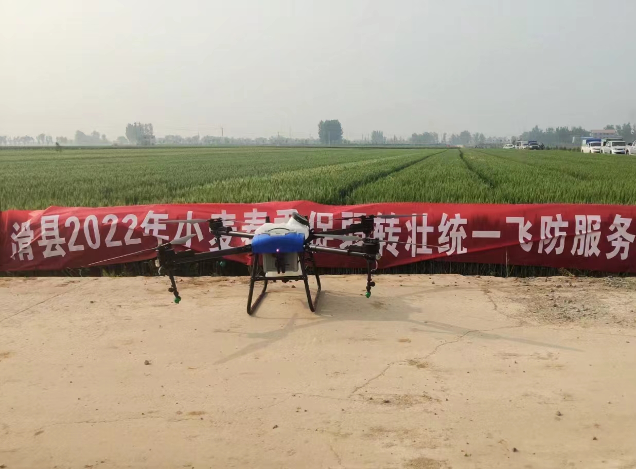 近日,滑县供销社为农服务中心组织无人机10架、飞防机手12人、服务保障车辆3辆,保障人员6人,利用一周左右的时间,对滑县白道口镇、留固镇 、赵营镇等区域订单及托管的2.2万亩小麦实施“一喷三防”作业。本次喷洒可大幅度降低条锈病、赤霉病等病虫害的发生,为夏粮丰收打下坚实基础。