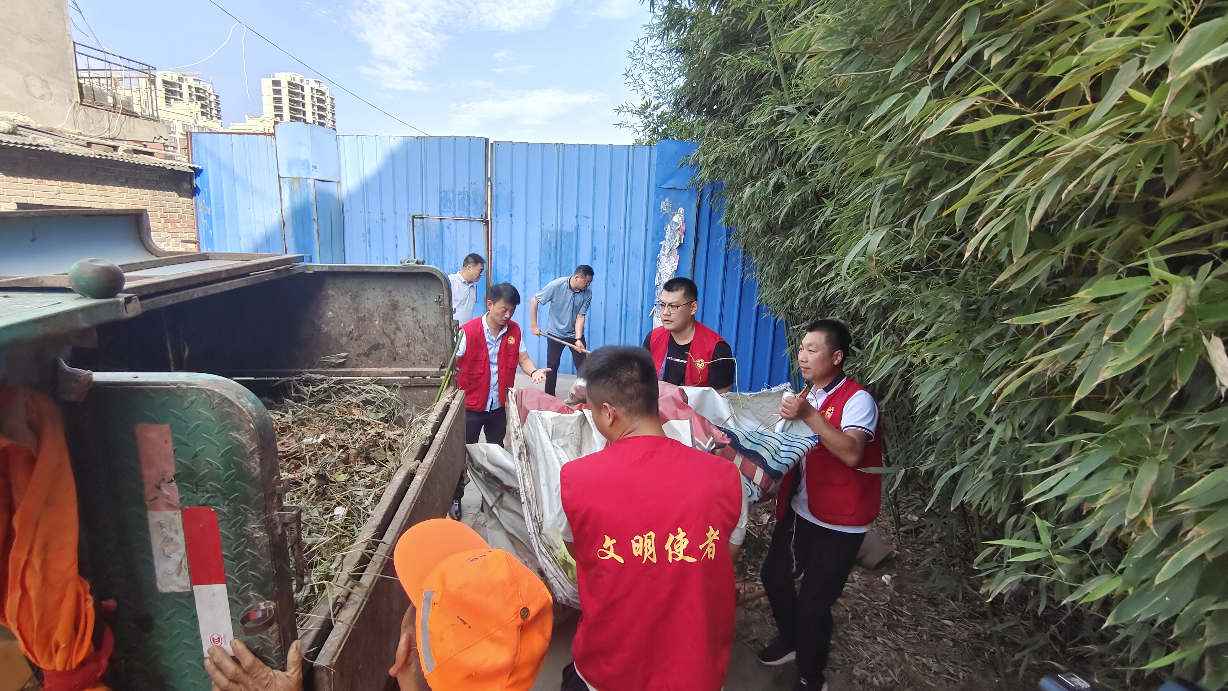 中心提前协调联系好垃圾清运车,加班加点对清扫出的垃圾进行整治清运,自创建以来,共清运垃圾15吨,清理门前屋后乱堆乱放50余处,砍伐歪倒树木4棵,清理杂草30余处,摆放非机动车300余辆次,有效提高了责任区域环境卫生质量,充分展现了交易人良好的精神风貌和责任担当。