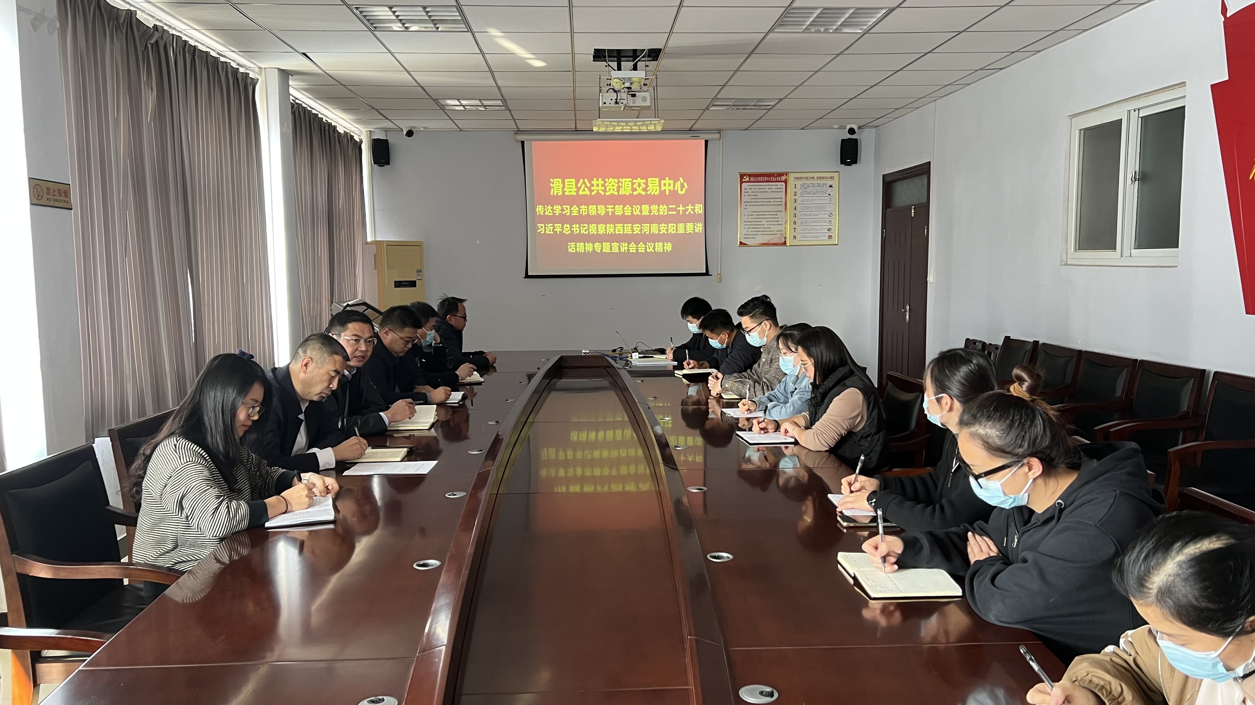 11月2日,县公共资源交易中心召开全体会议,传达全市领导干部会议暨党的二十大和习近平总书记视察陕西延安河南安阳重要讲话精神,中心党组书记、主任蒋宾主持会议,全体干部职工参加。