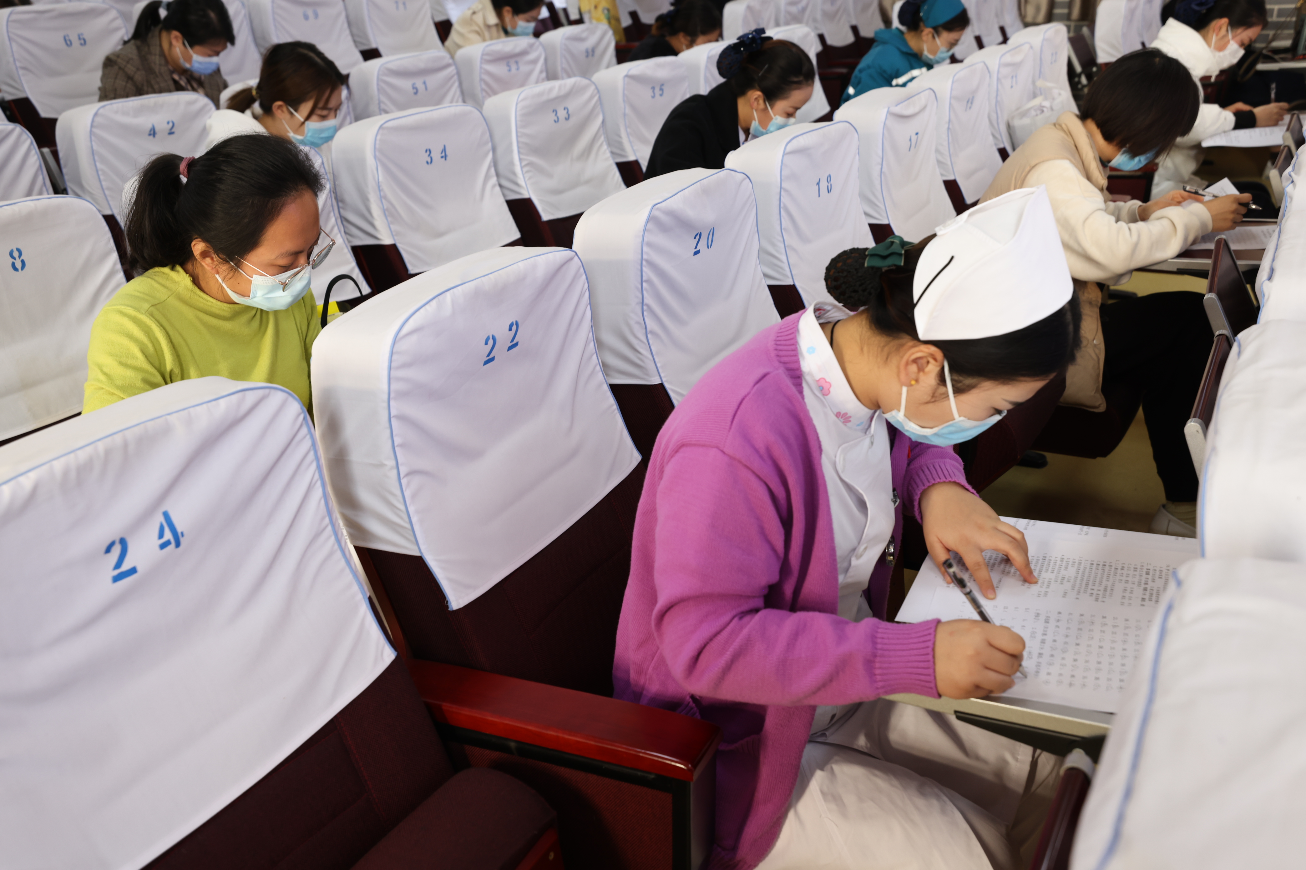 竞赛分为两场,护理理论考试和技能操作考试。选手通过随机抽签的方式确定技能操作顺序。参赛人员个个精神饱满,理论考试考场纪律良好,每位选手都胸有成竹,奋笔疾书,认真作答。操作考试中各位选手技术娴熟、操作规范准确。