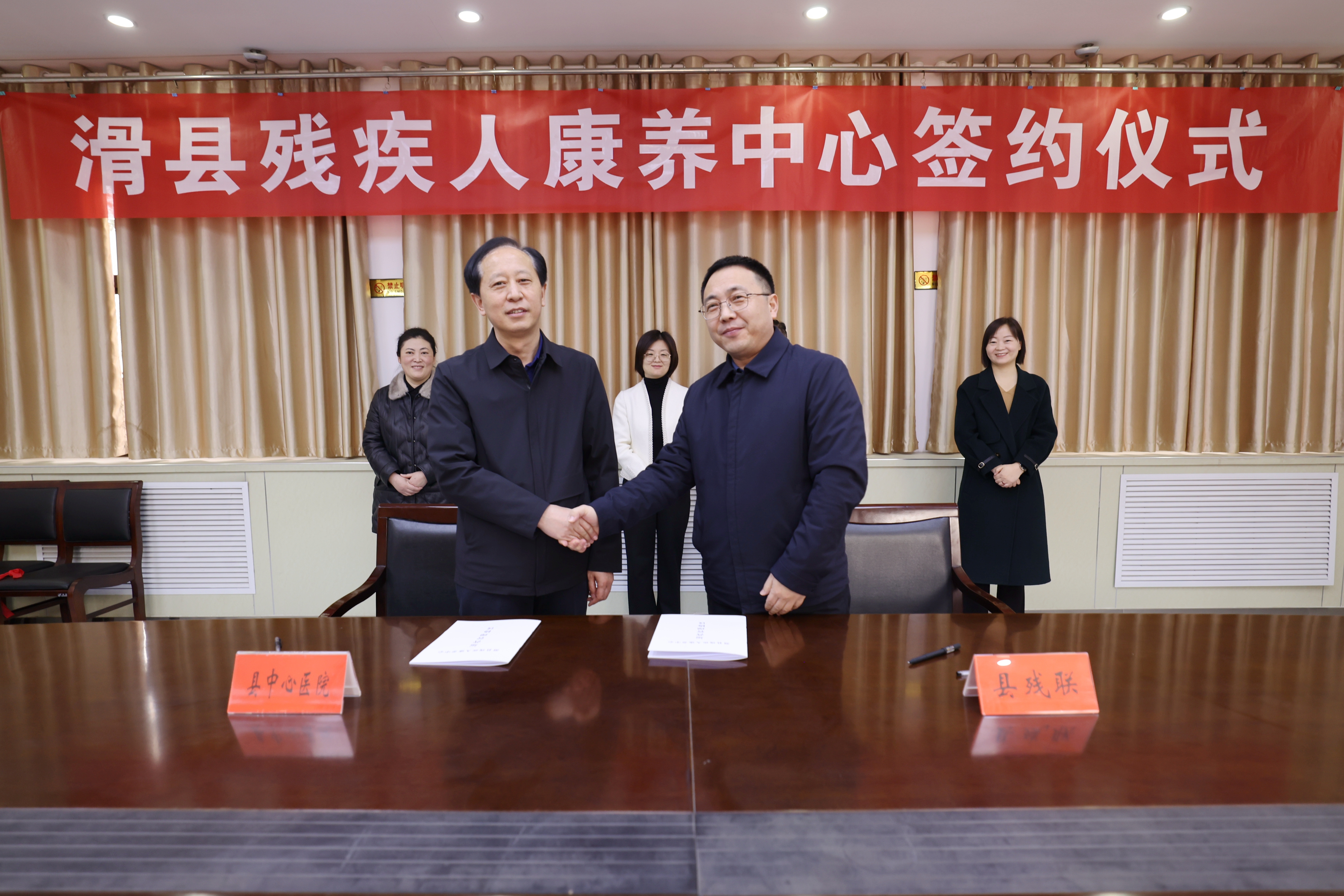 为推进我县残疾人康复事业发展,提高残疾人的健康救助质量。2月14日上午,滑县残联与滑县中心医院举行了滑县残疾人康养中心签约仪式,滑县政府副县长李鑫,滑县政府办党组成员徐红涛,滑县残联党组书记、理事长张凤国,滑县残联党组成员、副理事长李晓燕,滑县中心医院院长席连峰,滑县中心医院副院长陈光辉出席会议。
