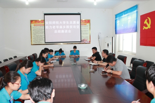 8月8日上午,老爷庙乡召开安阳师院大学生志愿者助力脱贫攻坚总结座谈会,全面总结反馈大学生志愿者在老爷庙乡助力脱贫攻坚期间的工作和生活情况。