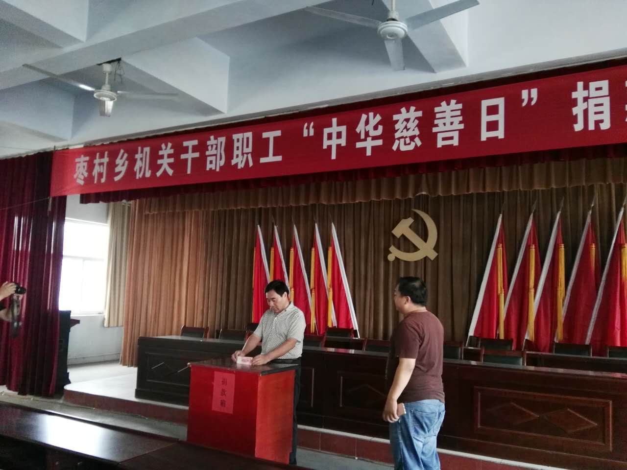 9月5日上午,枣村乡组织全体机关干部职工举行“中华慈善日”捐款活动,班子成员率先垂范,带头捐款,大家慷慨解囊。