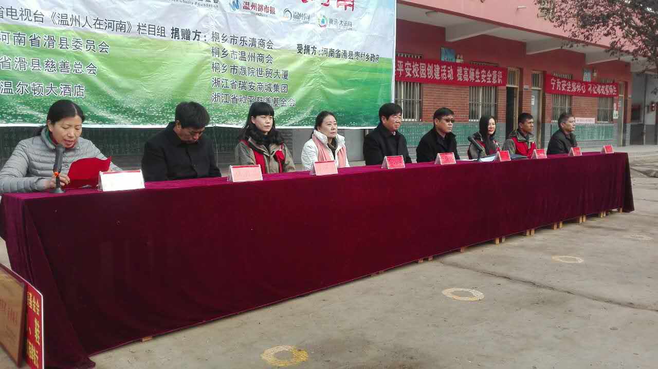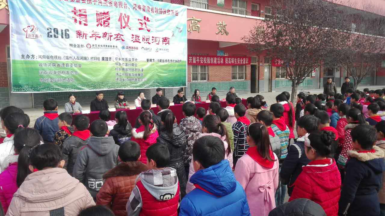浙江省和平慈善基金会携手河南电视台、滑县政协在枣村乡南屯小学举行扶贫济困捐赠仪式
