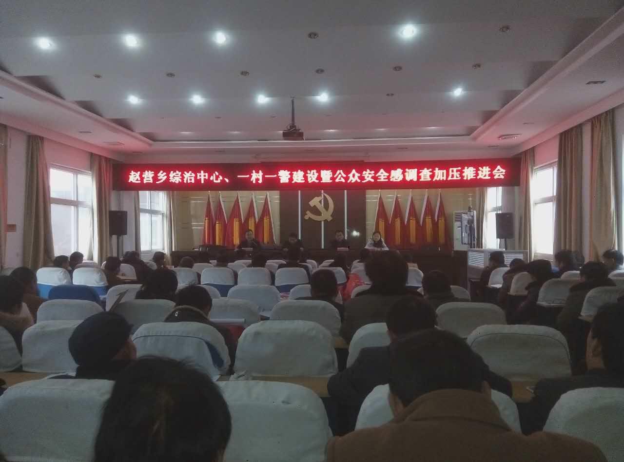 11月22日,赵营乡组织召开综治中心、一村一警建设暨公众安全感调查加压推进会。会议强调,信访维稳是综治工作的重中之重,各行政村必须高度重视,要按照县里统一安排部署,认真开展乡村综治中心、一村一警建设,扎实做好矛盾纠纷和安全隐患排查。在提升公众安全感工作方面,各行政村要多渠道加大宣传力度,切实搞好全民义务巡逻,不断提升公众安全感、增强公众满意度,确保群众安居乐业。