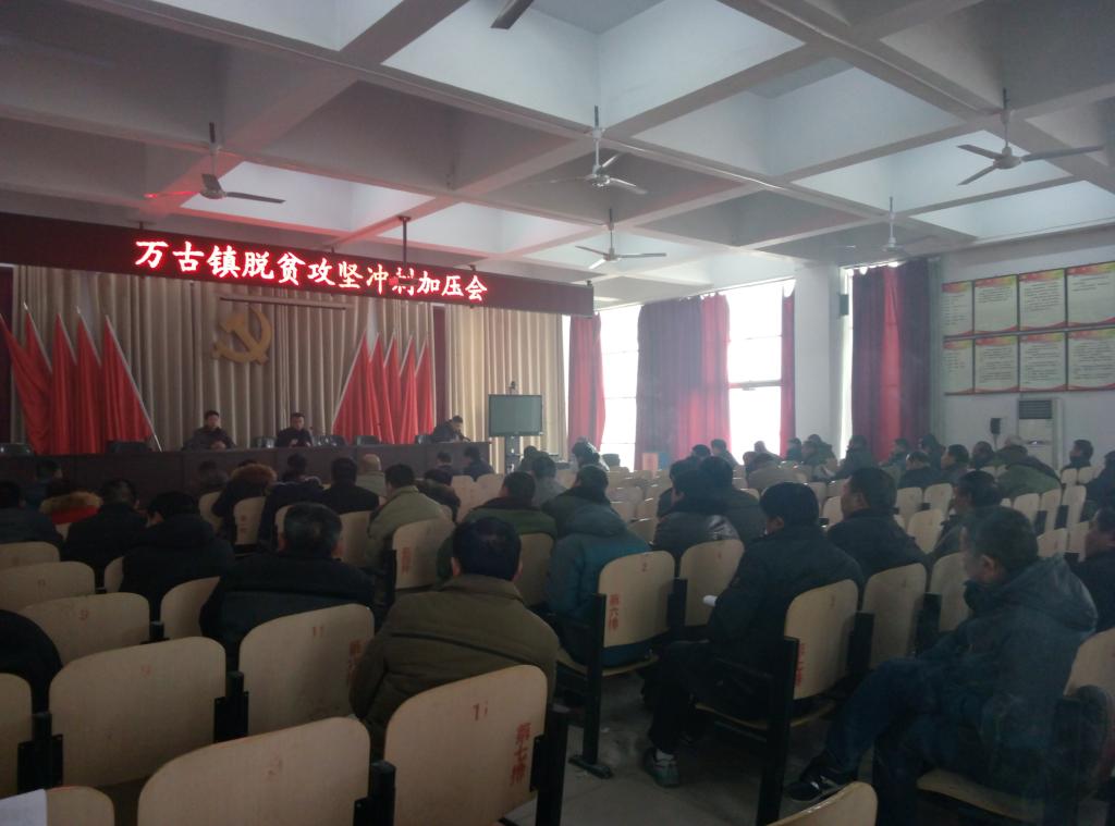 日前,万古镇在政府大会议室召开由镇机关全体干部职工、镇直部门负责人、42个行政村村支部书记和8个贫困村驻村第一支部书记参加的脱贫攻坚冲刺加压会,会议传达了县脱贫攻坚周例会会议精神,指出了脱贫攻坚工作中的短板和不足之处,要求大家切实解决当前脱贫攻坚工作中存在的所有问题,严格按照标准要求完善好各项台帐资料,查漏补缺,坚决打赢脱贫攻坚战,确保脱贫攻坚战决战决胜。