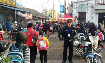 道口镇派出所积极开展“护校安园”活动。该镇派出所严格按照上级的安排部署,迅速组织民警在辖区中小学、幼儿园设立了护学岗,安排专门警力在每天早、中、晚学生上、下学时段在校门口执勤,疏导交通,并在校园周边进行巡逻,全力维护校园治安秩序。护学岗的设立,进一步提高了见警率、管事率,增强了师生的安全感和满意度,受到了广大师生及学生家长的高度赞扬。