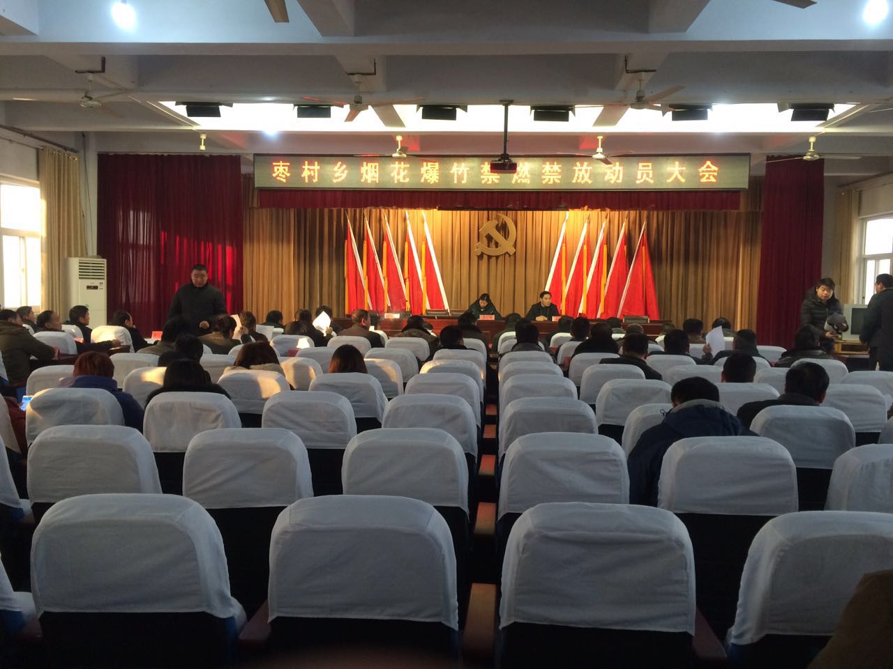 1月16日,枣村乡组织召开烟花爆竹禁烧动员会,安排部署春节期间的烟花爆竹禁烧工作。