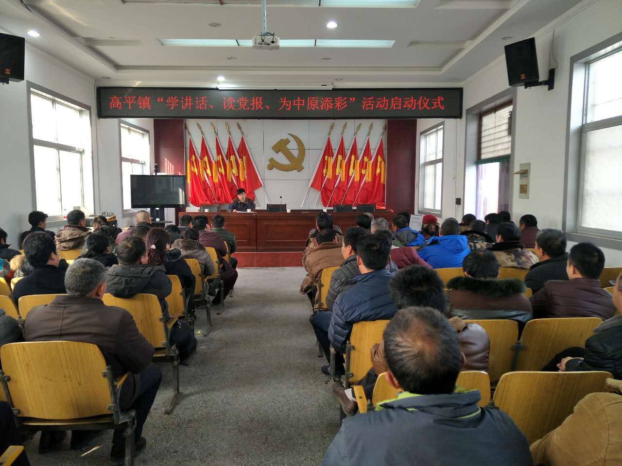 1月12日,高平镇在镇机关大会议室举行了由镇机关全体干部职工参加的“学讲话、读党报、为中原添彩”活动启动仪式。