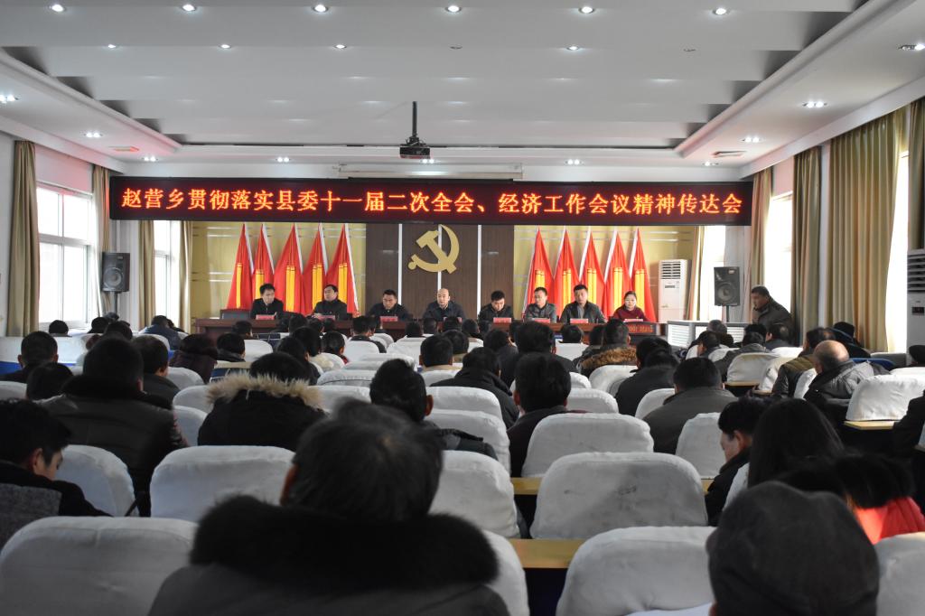 1月11日,赵营乡组织全体机关干部、乡直部门负责人、全体村两委成员召开工作会议,传达贯彻县委十一届二次全会、经济工作会会议精神。