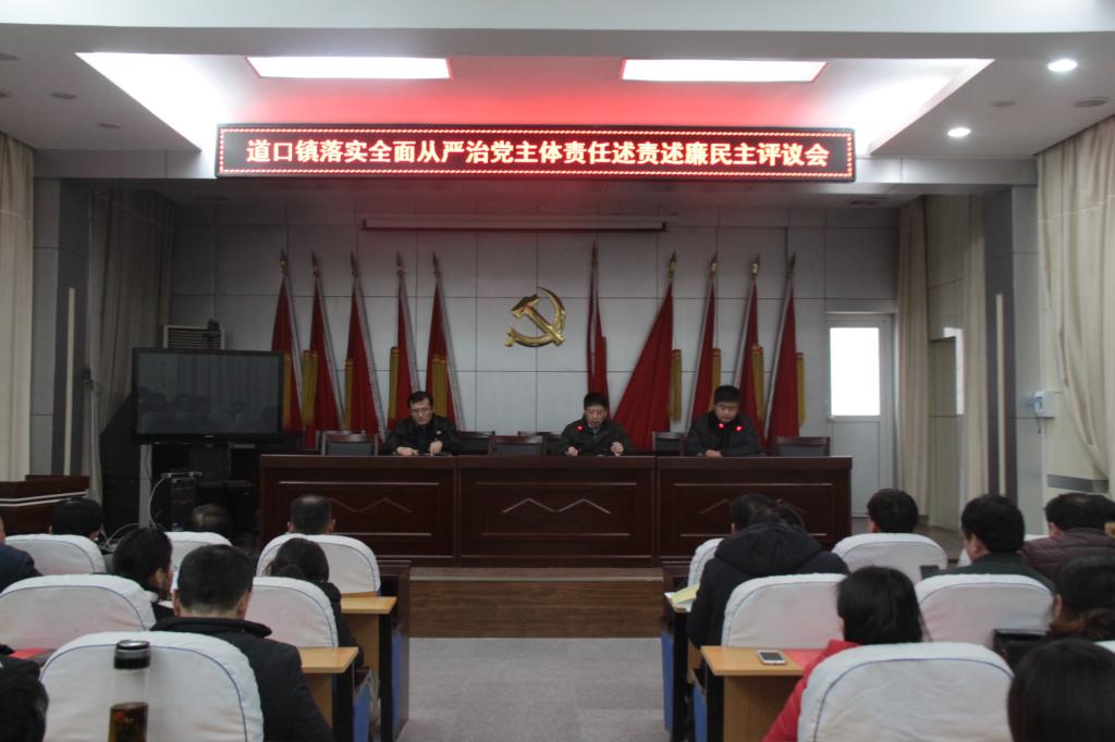 为了贯彻省委、县委关于落实全面从严治党主体责任的有关要求,1月5日下午,道口镇召开落实全面从严治党主体责任述责述廉民主评议会,镇机关全体、部分镇直部门、部分“两代表一委员”参加了会议。会上首先由陈卫民代表领导班子对2016年班子履行全面从严治党责任和遵守廉洁自律规定情况作了报告。之后,全体与会同志认真填写了落实全面从严治党主体责任述责述廉民主评议表。最后,陈卫民就如何落实好监督责任工作提出两点要求,一是要增强“一岗双责”意识,抓好党风廉政建设工作;二是要增强规矩意识,切实做到立明规矩、破潜规则。