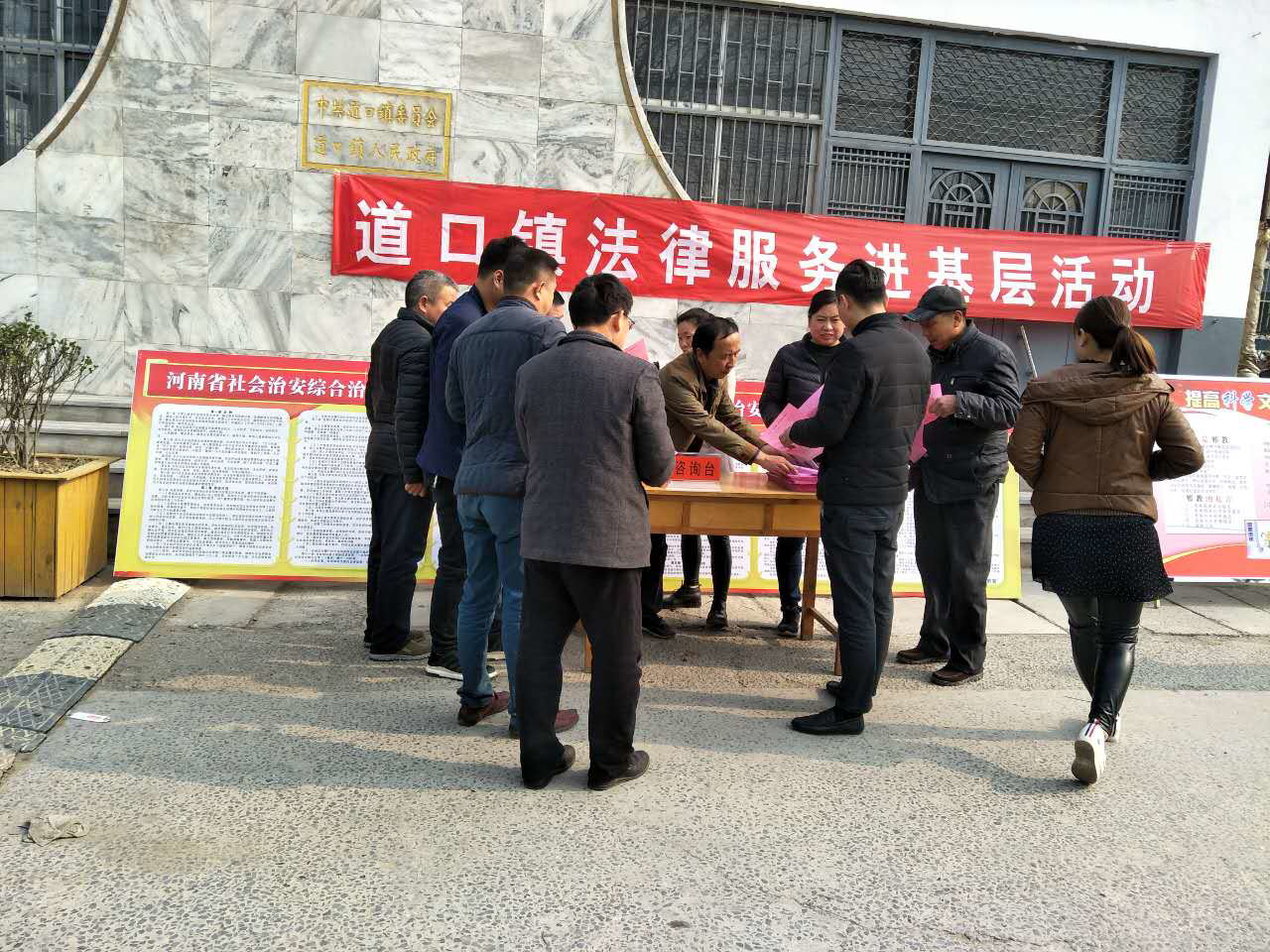 3月27日、28日上午,道口镇司法所联合镇工会、综治办等部门,开展了“法律服务进基层”专项法治宣传教育活动。通过张贴标语、悬挂横幅、制作宣传展板、出动宣传车、设立咨询台、发放宣传资料等多种形式,向过往群众宣传治安处罚法、信访条例、法律援助、社区矫正、劳动就业等与群众工作生活息息相关的法律知识,并耐心细致地为他们解答法律问题。
