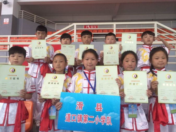 2017年4月,道口镇第二完全小学被省体育局、省教育厅批准为“河南省武术特色学校”,5月8日至10日,在体彩杯·2017年河南省武术特色学校比赛中,该校“精武”代表队获得两个单项一等奖、两个单项二等奖、一个单项三等奖、两个单项优胜奖、集体长拳二段二等奖、集体健身拳操二等奖、体育道德风尚奖的优异成绩。