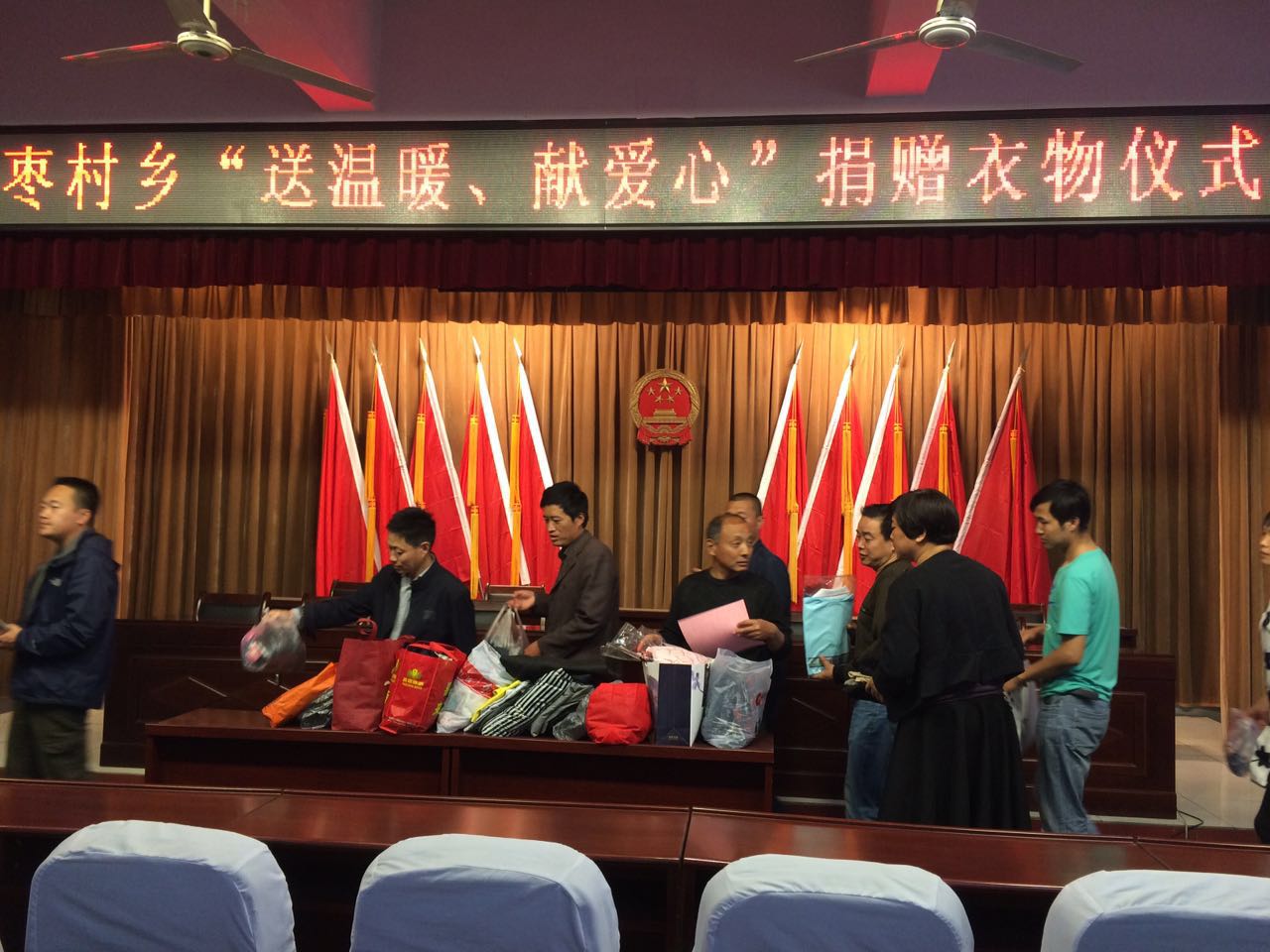 5月3日上午,枣村乡组织全体机关干部职工举行“送温暖、献爱心”捐赠衣物仪式。该乡干部职工纷纷慷慨解囊,将干净、整洁的衣服捐献给贫困群众。