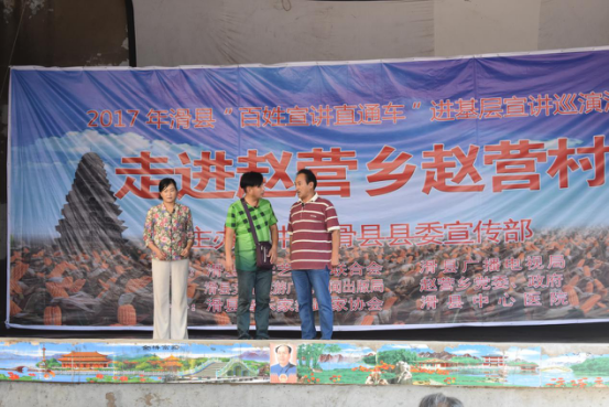 8月4日上午,“百姓宣讲直通车”走进赵营乡赵营村。本次“百姓宣讲直通车”进基层宣讲巡演活动吸引了共计300余名观众前来观看。演出通过文艺搭台、理论唱戏的方式,将理论宣讲融入艺术表演,将“中国梦”“十八大精神”“脱贫攻坚”等内容,用“歌曲、戏曲、小品”等贴近民生、接地气的艺术形式呈现出来,让老百姓在看节目的同时接受教育,深化了群众对社会主义核心价值观、中国梦的认知认同。这些文艺作品贴近基层、贴近实际、贴近生活,让党的理论方针政策在群众的欢声笑语中入门入户、入脑入心,受到了广大群众的喜爱和认可。