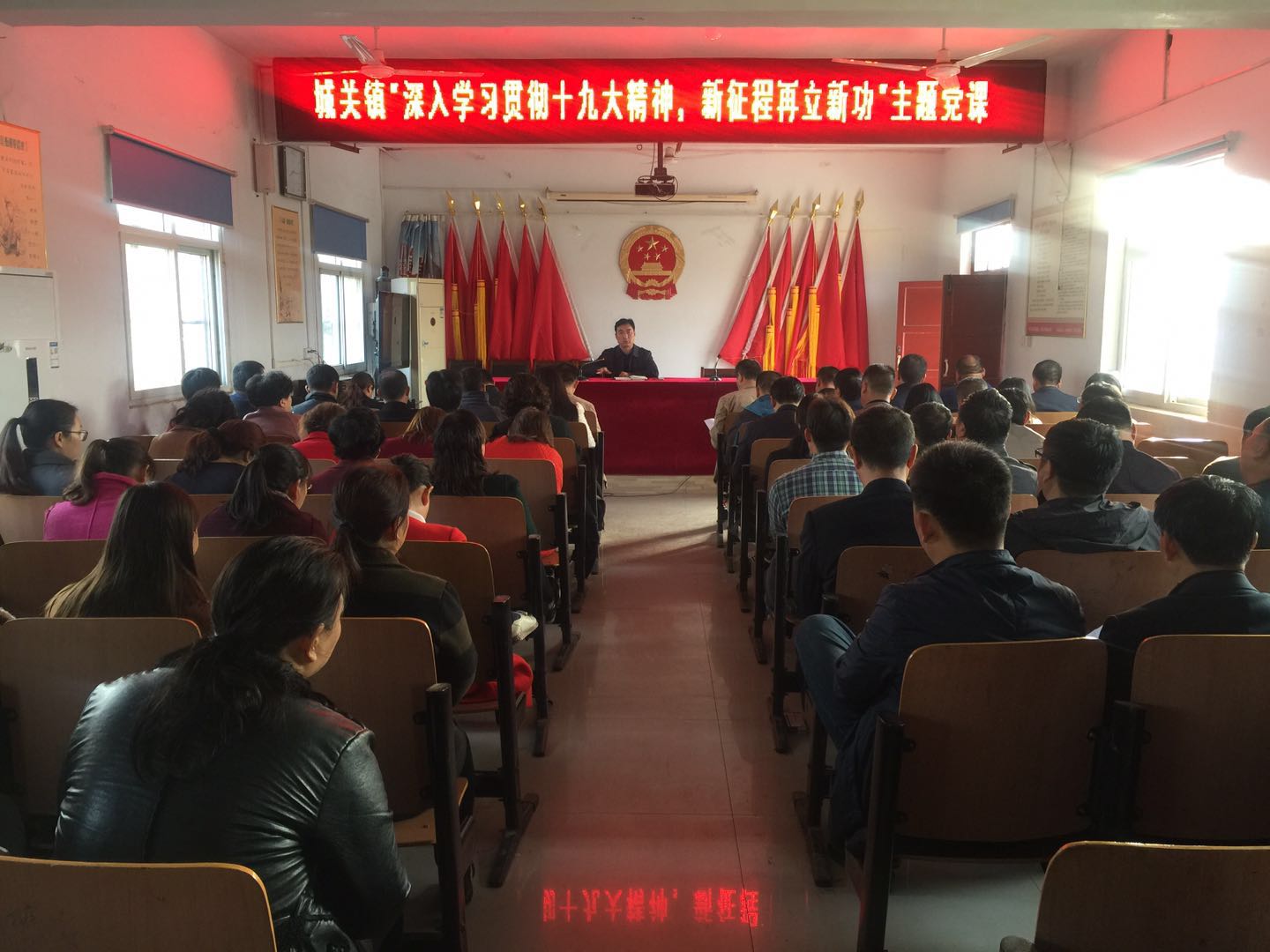 10月27日上午,城关镇组织机关全体干部职工开展了“深入学习贯彻十九大精神,新征程再立新功”主题党课,镇党委副书记、镇长赵宪海同志主持了党课学习。