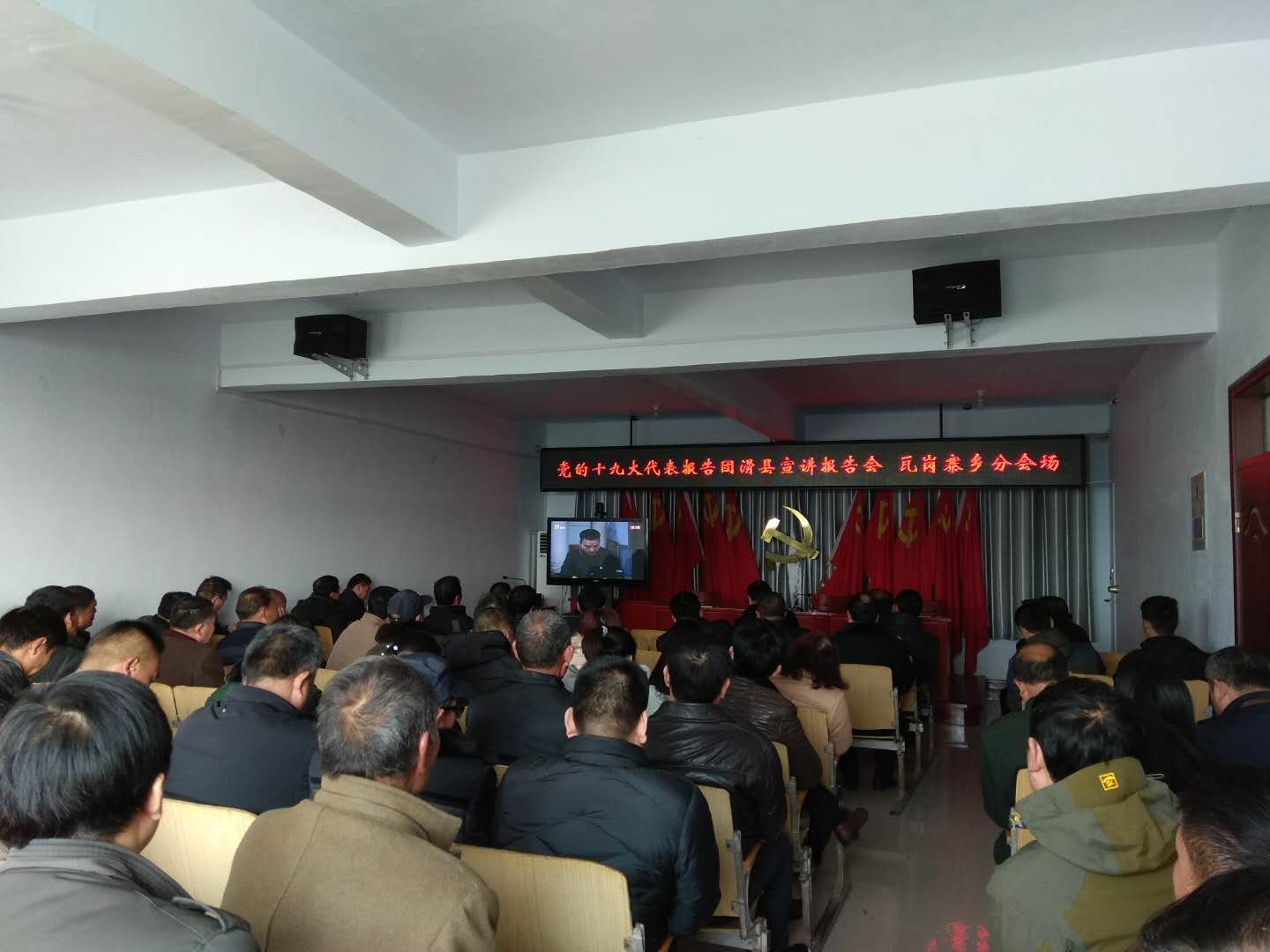 11月30日上午,瓦岗寨乡在政府五楼大会议室组织观看了党的十九大代表报告团滑县宣讲报告会,乡机关全体、乡直各部门和各村支书村长120余人参加。同时,辖区内29个村都安排了专人负责带领大家一起观看。