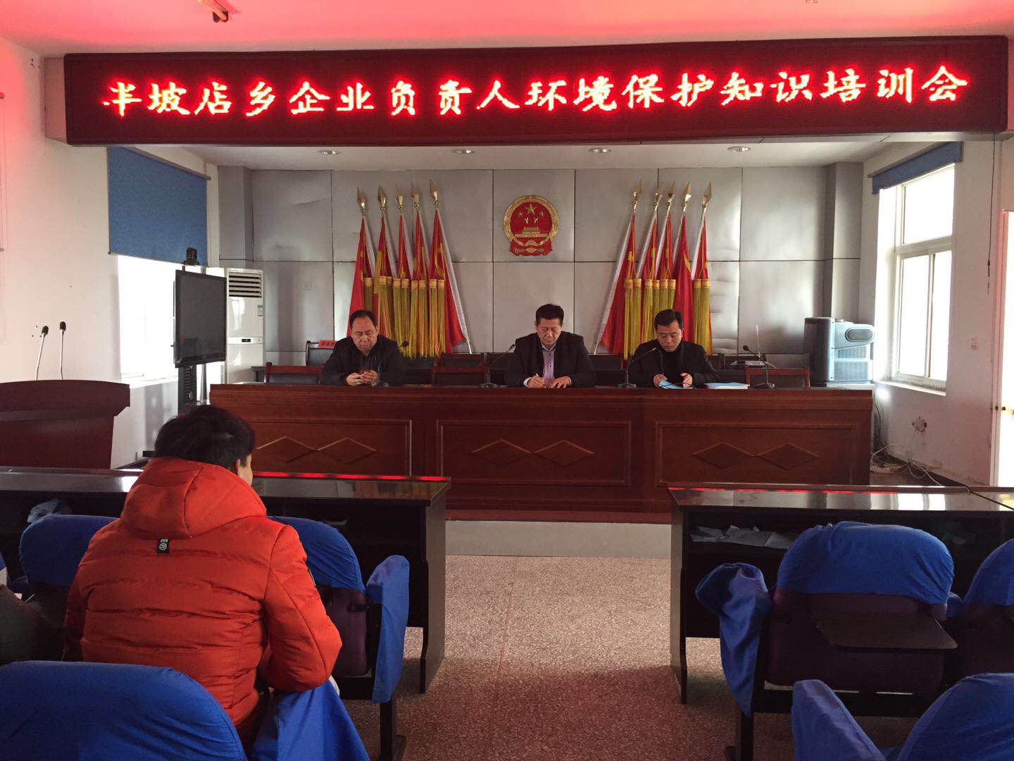 为坚决打赢环境污染防治攻坚战,29日上午,半坡店乡召开企业负责人环境保护知识培训会,县环保局监察大队张传钦出席会议,半坡店乡150多家企业负责人参会。