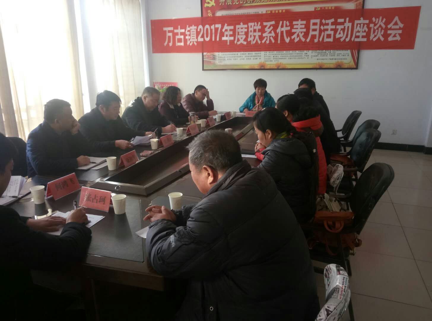 日前,万古镇2017年度联系代表月活动座谈会在该镇政府二楼小会议室召开。