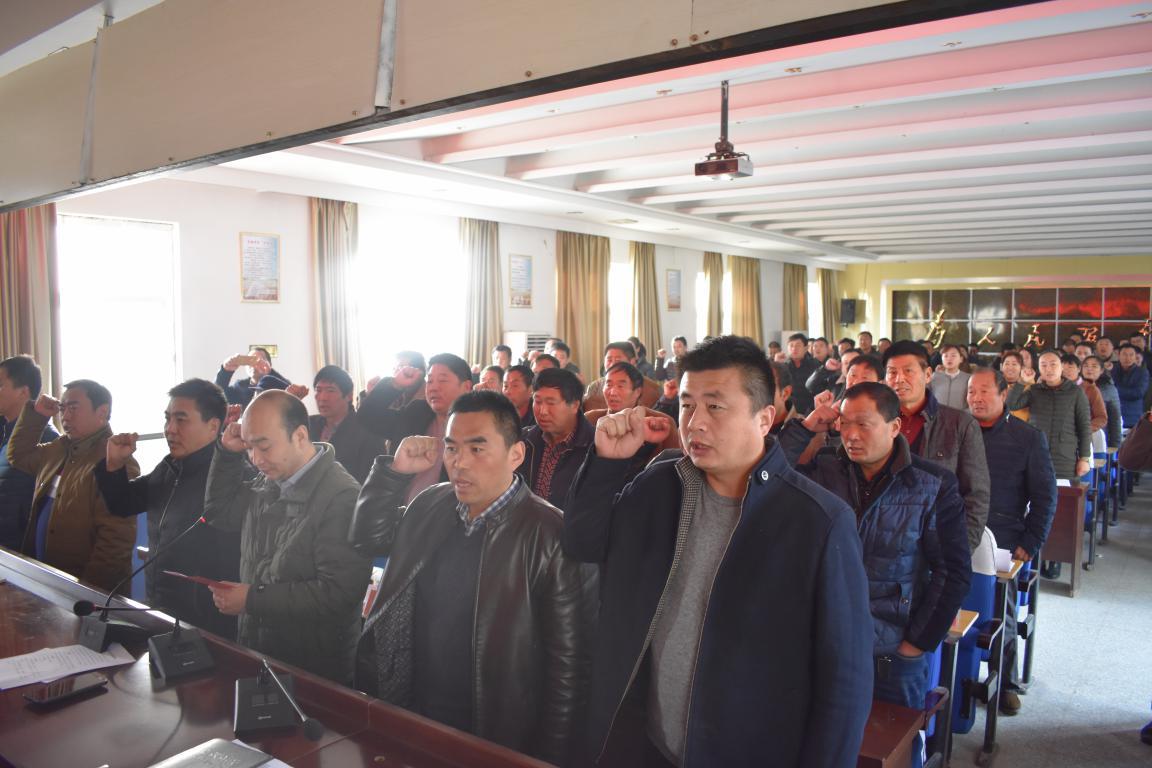 会议组织全体党员面对党旗集体宣誓,重温入党誓词,使广大党员干部“不忘初心”,牢记中华民族伟大复兴和全面建成小康社会的使命,争当表率先锋;并共同学习了党的十九大报告问答及党章新修订内容,要求各党支部组织好党员开展学习十九大精神,每名党员谈感想、谈认识、谈贯彻落实打算,把十九大精神贯彻落实到每个支部、每名党员。