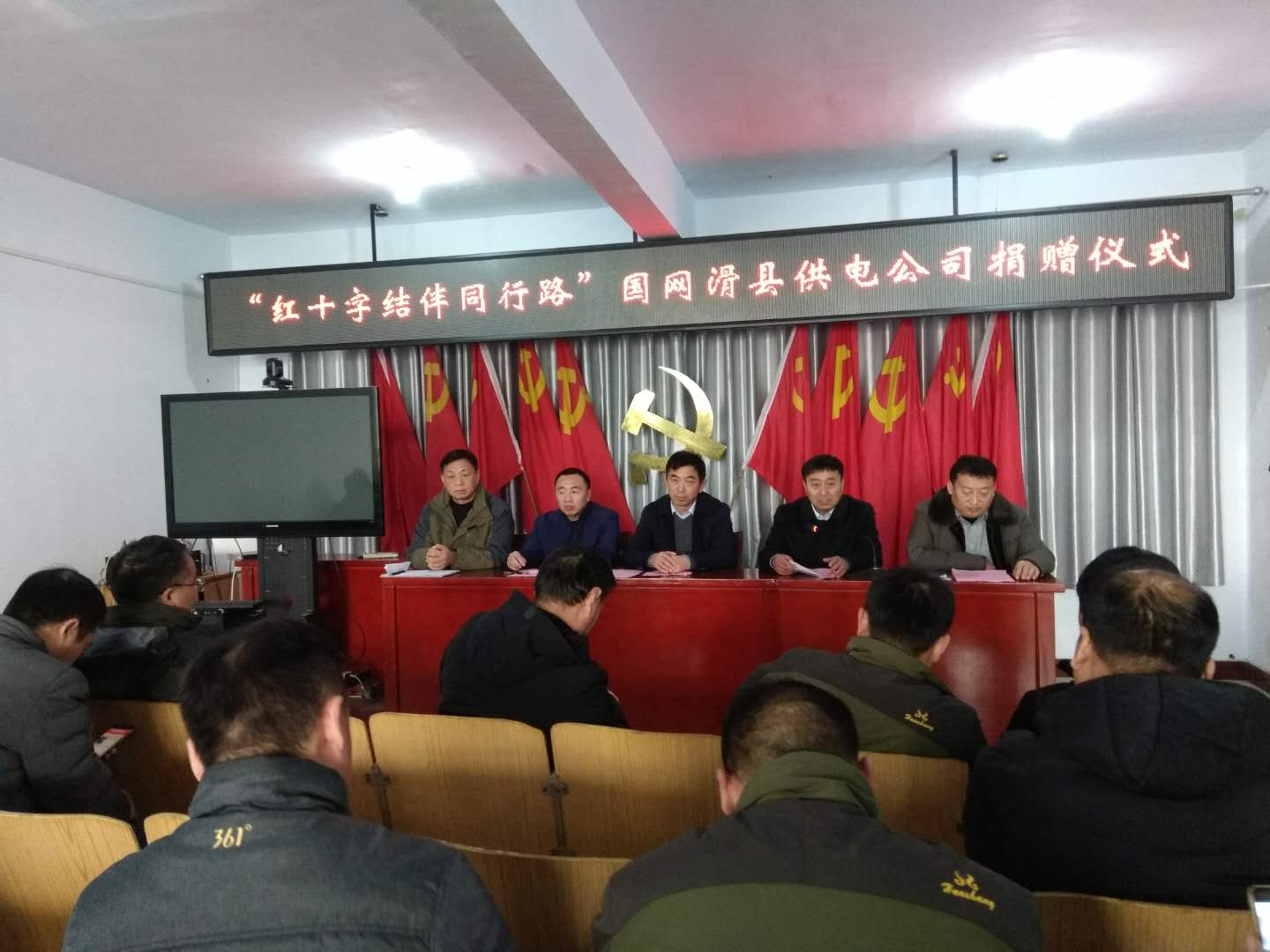 12月15日上午,瓦岗寨乡迎来了滑县红十字会与国家电网有限公司滑县分公司一行,在政府五楼会议室举行了“红十字结伴同行路”国网滑县供电公司捐赠仪式,国家电网供电有限公司滑县分公司向瓦岗寨乡红十字会捐赠15万元善款用于瓦岗寨乡彭庄、马庄、小刘庄三个贫困村道路修缮、危房改造等基础建设。瓦岗寨乡红十字会会长、党委副书记发言承诺:一定管理和分配好这笔资金,让好事变成实事、让实事发挥到实处,让老百姓切实感受到党委政府及爱心捐赠单位的温暖。