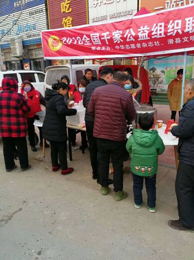 农历腊月初八,滑县爱心志愿者协会老店分会在老店集和马兰集设两个爱心粥点,预计送粥600份,每份包括鸡蛋、包子、粥、油条等爱心食物,为老店的环卫工人、空巢老人以及全镇人民群众送去温暖和爱心。