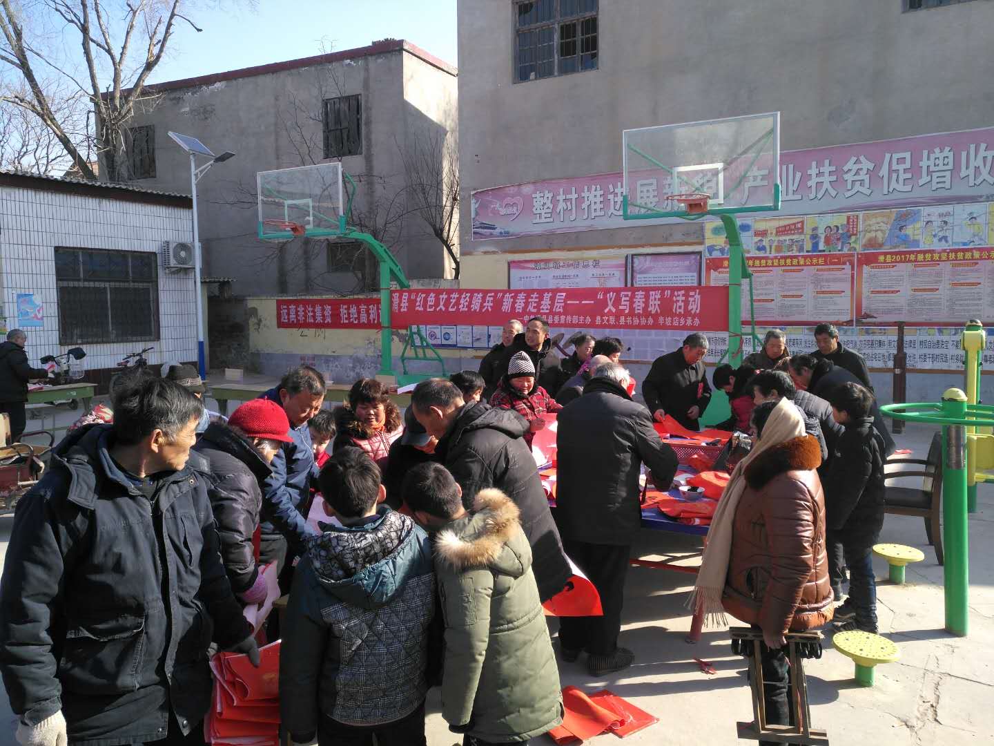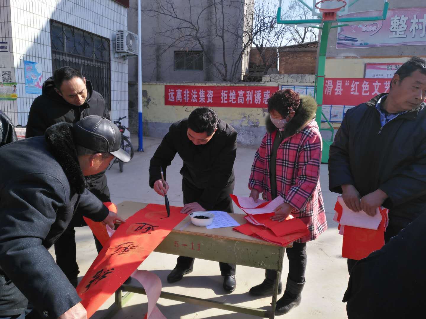 为深入践行社会主义核心价值观,丰富节日期间群众精神文化生活,助力决胜全面建成小康社会,2月3日,滑县“红色文艺轻骑兵”新春走基层“义写春联”活动走进半坡店乡黄塔村。