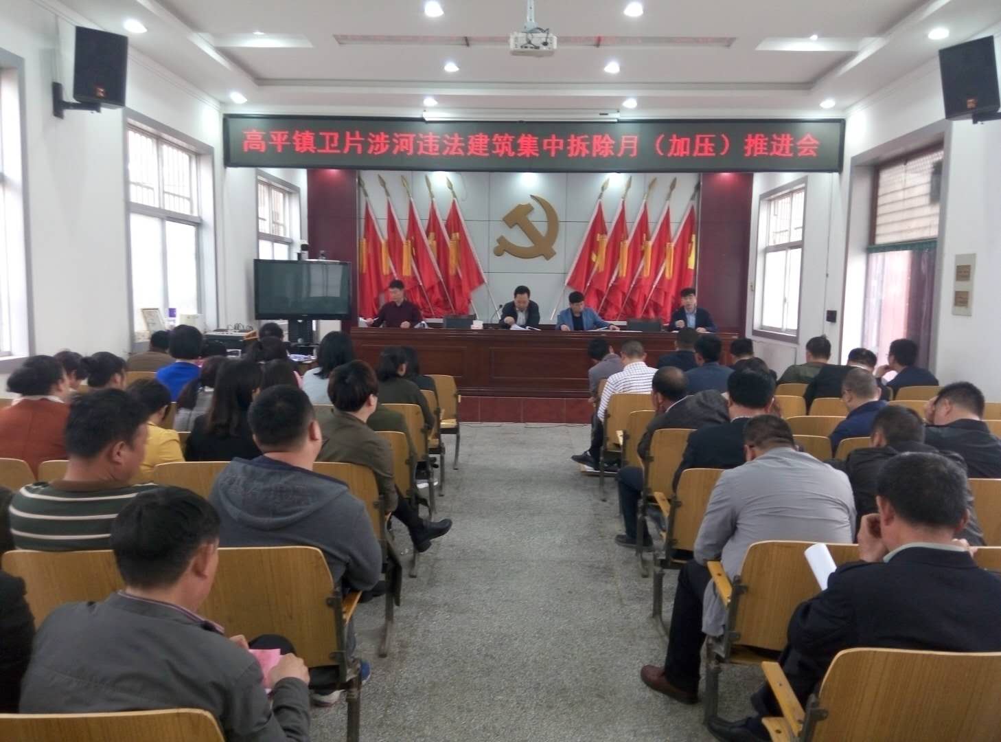 4月10日上午,高平镇在镇会议室召开卫片涉河违法建筑集中拆除月加压推进会。镇全体机关干部、各行政村主要负责人参加了会议。
