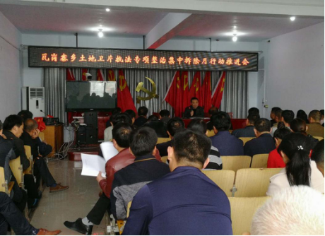 4月10日上午,瓦岗寨乡在政府五楼大会议室召开了土地卫片执法专项整治集中拆除月行动推进会,乡机关全体干部职工、驻村第一书记参加会议。