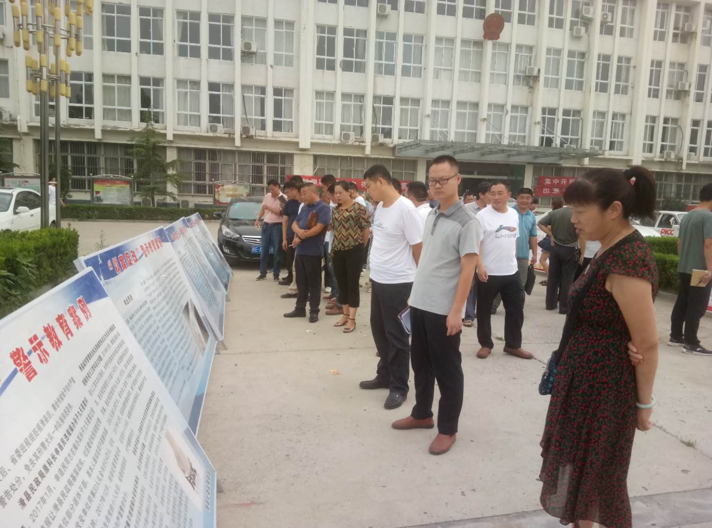 7月30日上午,万古镇组织机关全体党员干部、各村驻村第一书记、各村“村两委”干部全体240余人在该镇政府办公大楼前集中观看了监察法宣传和以案促改案例展览。