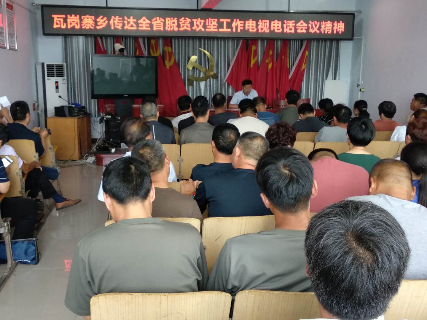 7月3日上午,瓦岗寨乡传达全省脱贫攻坚工作电视电话会议精神,乡村两级干部和驻村第一书记全体扶贫干部参加会议。