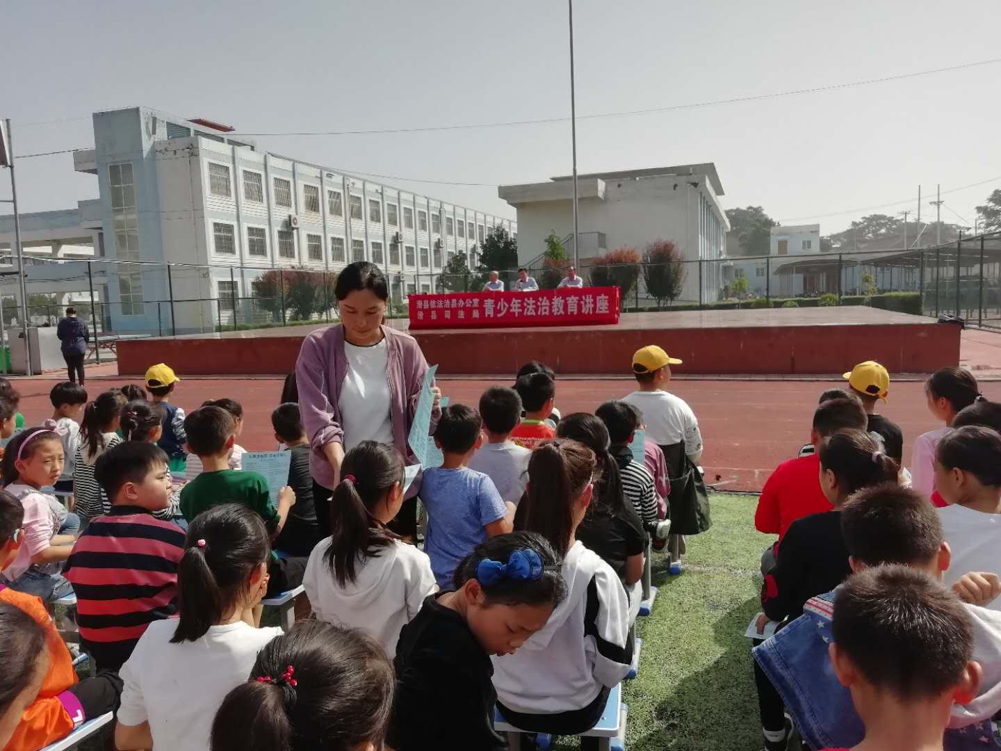 报告会上,县司法局和司法所工作人员为大家上了一堂生动的法制宣讲课。紧扣学生关心的热点和焦点问题,以案释法,深入浅出地为孩子们讲述了什么是违法与犯罪,用生动的案例、深刻的教训,警示学生要遵纪守法,鼓励青少年学生树立良好品行,树立正确的人生价、世界观和价值观,树立远大理想,陶冶高尚情操,健康成长。
