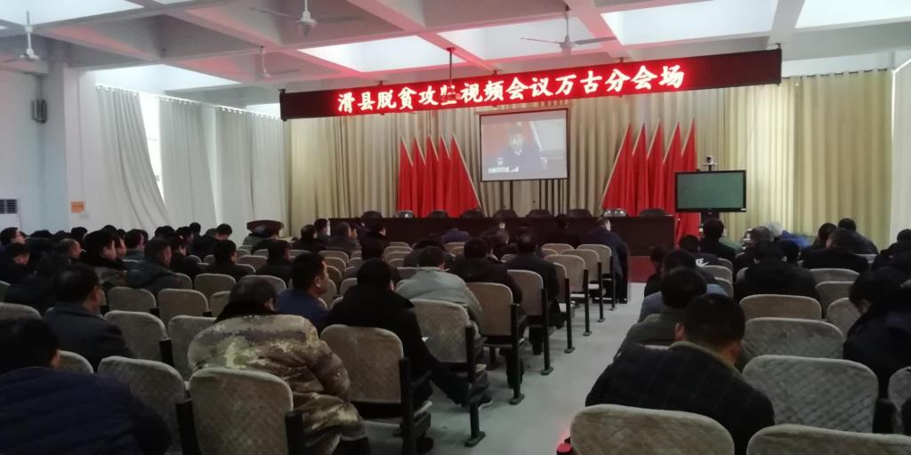 12月26日上午,万古镇组织机关全体党员干部、各行政村“三主干”、各行政村驻村第一书记在政府大会议室集中收听收看全县脱贫攻坚视频会议。
