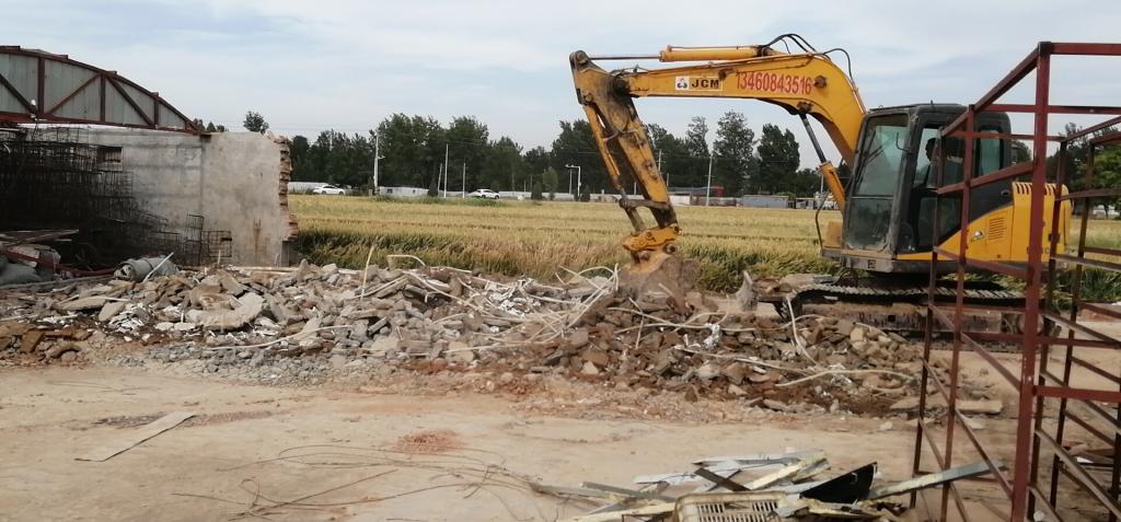 二、强力推进,严格执法。对未在规定时间内没有自行拆除复耕的图斑,组织土地、城管等部门开展联合执法,出动挖掘机、铲车等大型机械设备,强力拆除复耕,保持高压态势,形成震慑作用。