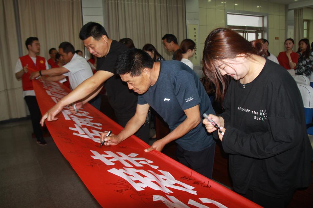 此次道德讲堂共包括看短片、唱歌曲、诵经典、讲故事、学榜样、做承诺、做点评、送吉祥这八个环节。活动中,机关全体干部职工及各村代表一同观看短片《感恩父母、感恩教育》及《妈妈的等待》、《爸爸的谎言》,共同感念父母对子女无私、无言的爱;学唱歌曲《常回家看》、学习二十四孝故事精选、诵读经典《游子吟》《弟子规》节选则又再次提升了与会人员的孝老爱亲意识和道德情怀;而参会人员现场郑重签名,承诺“孝老爱亲 传承好家风好家训”,更是将活动气氛推向了高潮。
