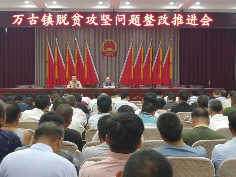 7月21日上午,万古镇在镇政府大会议室组织召开脱贫攻坚问题整改推进会,镇机关干部、驻村第一书记、村两委干部参加了会议。