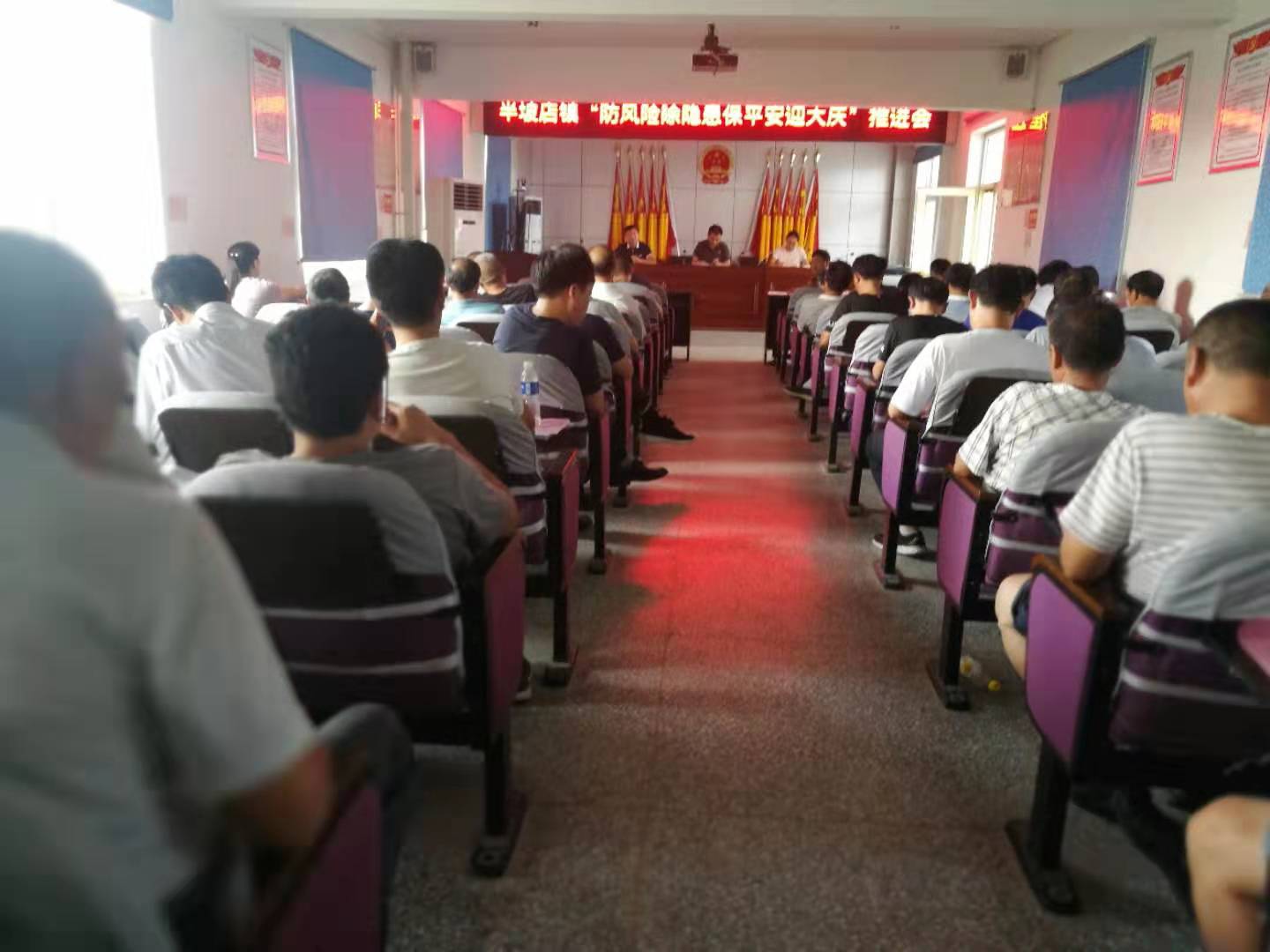 为深化安全风险隐患双重预防体系建设,有效防范遏制各类事故发生,确保中华人民共和国成立70周年全镇安全生产形势稳定,近日,半坡店镇召开“防风险除隐患保平安迎大庆”推进会,强力推动“防风险除隐患保平安迎大庆”专项行动走深走实。各村支部书记、重点企业负责人、相关镇直部门负责人、城管执法队、包村干部等200余人参加会议。