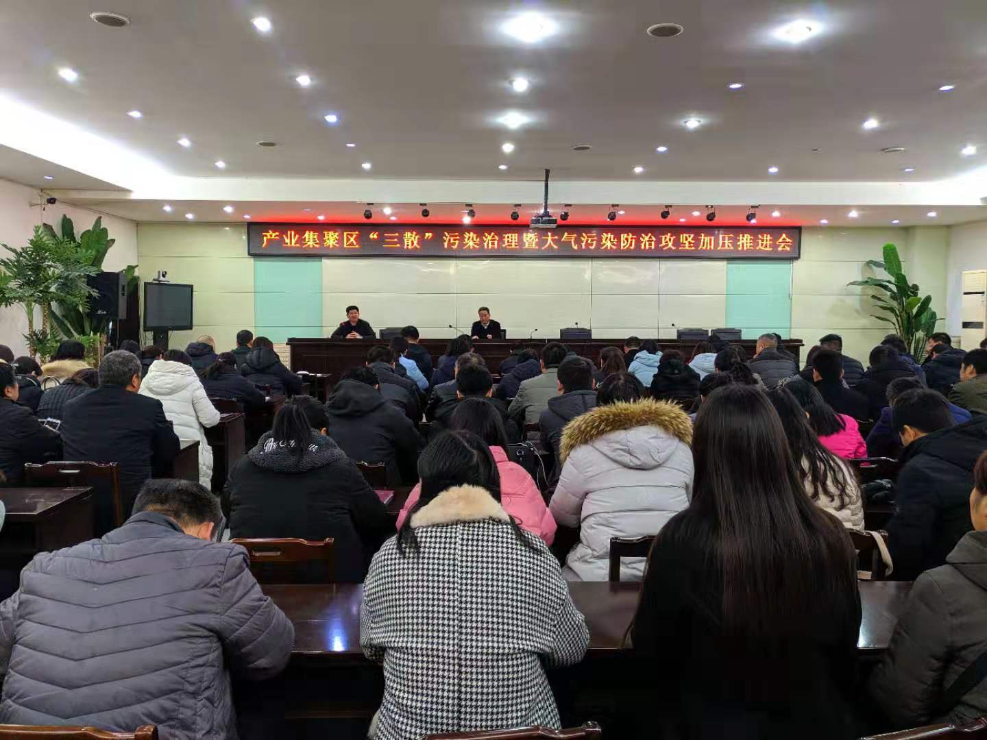 为深入贯彻落实全省“三散”污染治理暨秋冬季大气污染防治会议精神,12月5日,产业集聚区召开“三散”污染治理暨大气污染防治攻坚工作推进会,全体机关干部、各村包村干部、驻村第一书记共160余人参加会议。
