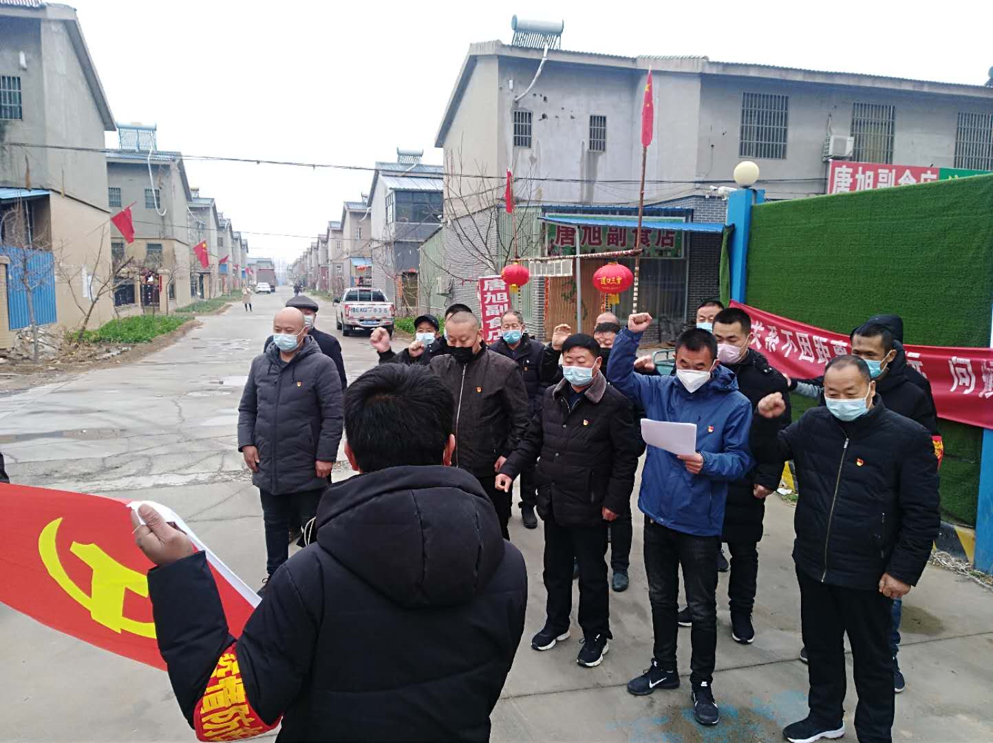 在这个特殊的党日里,锦和街道军旅庄、五里铺、宣武、孙王庄、沙河头、薛店、董东等村党支部在各自值班卡点面对党旗再次宣誓:用初心担使命,同心协力,用忠心筑起防“疫”线,疫情不结束,我们不罢休。