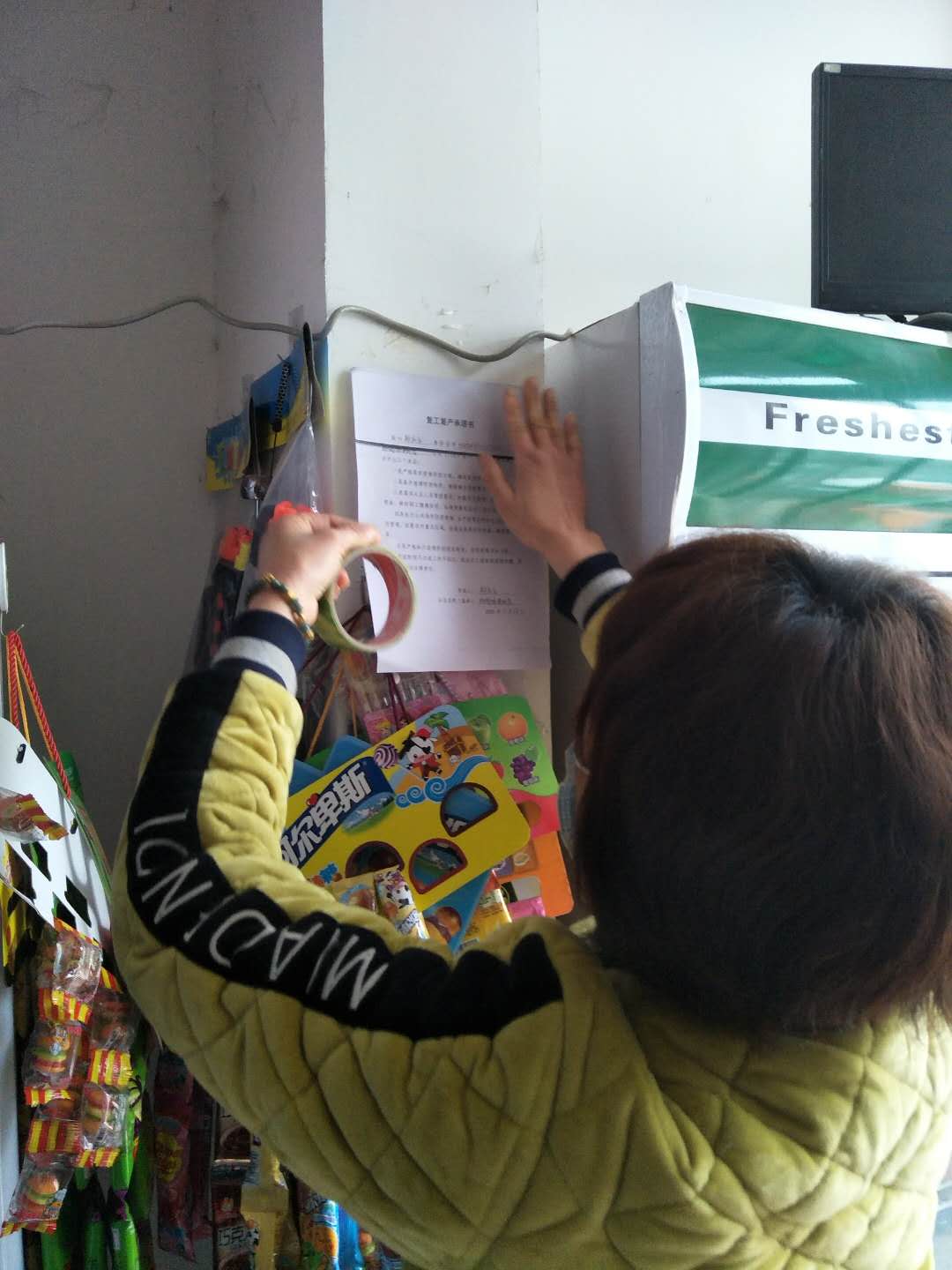 宣传引导。街道工作人员对小门店负责人宣传了疫情防控措施指南,要求小门店法定代表人把安全防疫作为当前头等大事,安全从严原则优先,落实员工健康监测和排查,加强员工的防疫宣传和管理,引导员工有序返岗,配备防控所需物资,全面经营场所消毒,落实复工上岗个人防护知识全员培训。