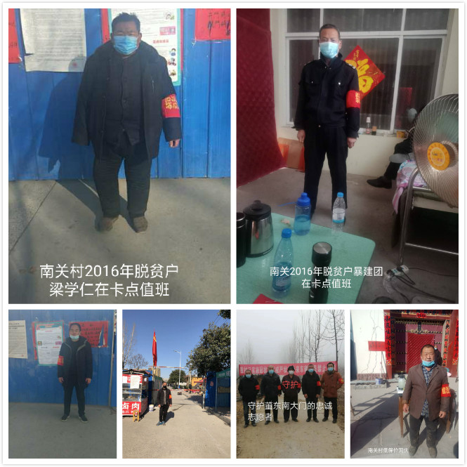 自疫情发生以来,锦和街道南关村2016年脱贫户梁学仁、脱贫户暴建团等多名已脱贫群众主动参与疫情防控,做好卡点人员登记、体温测量、疫情宣传、24小时值班等工作。除了站好“村口岗”,他们每天还带着小喇叭走街串巷,为村民们宣传普及疫情防控知识。不管天气多么恶劣,不管白天还是夜晚,防控卡点总能看到贫困户的身影。他们说“现在是农闲时间,其他的忙我们也帮不上,帮着在村口值班,也算是为村里出一份力。”这几年他们受益于精准扶贫的好政策,帮他们渡过难关。现在国家有难,全国人民都在抗击疫情,他们想做些力所能及的事。