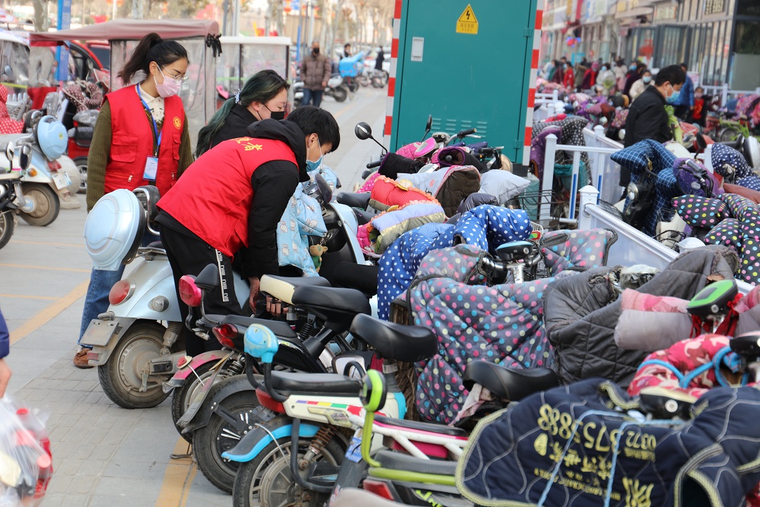 文明摆放车辆,我们在行动。志愿者们将超市外乱停乱放的车辆摆放整齐,同时,对机动车辆乱停乱放人员文明劝导,提醒大家文明出行,倡导做文明的骑行者、文明的停放者、文明的宣传者。
